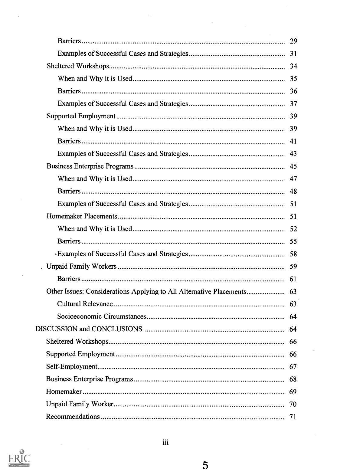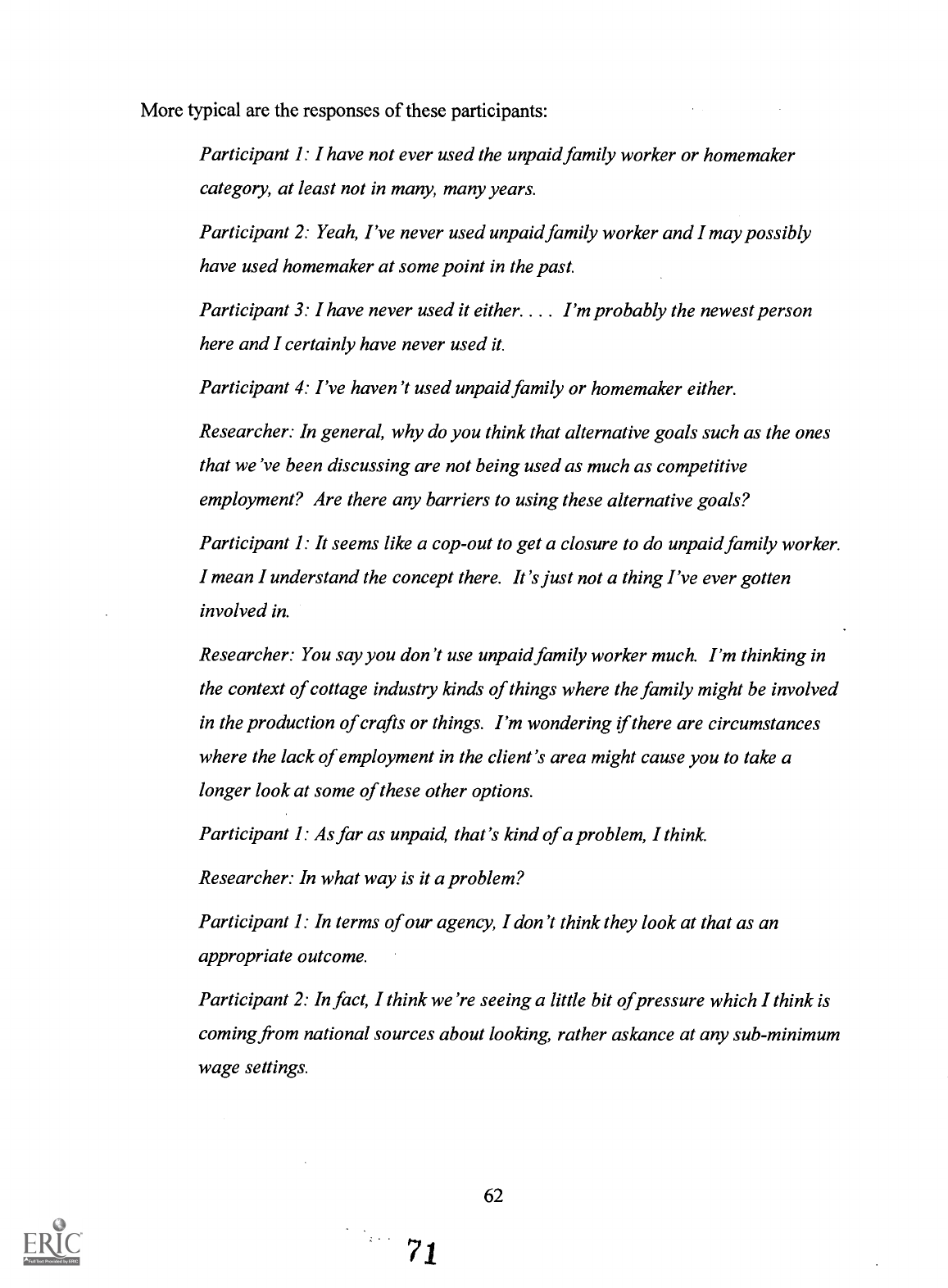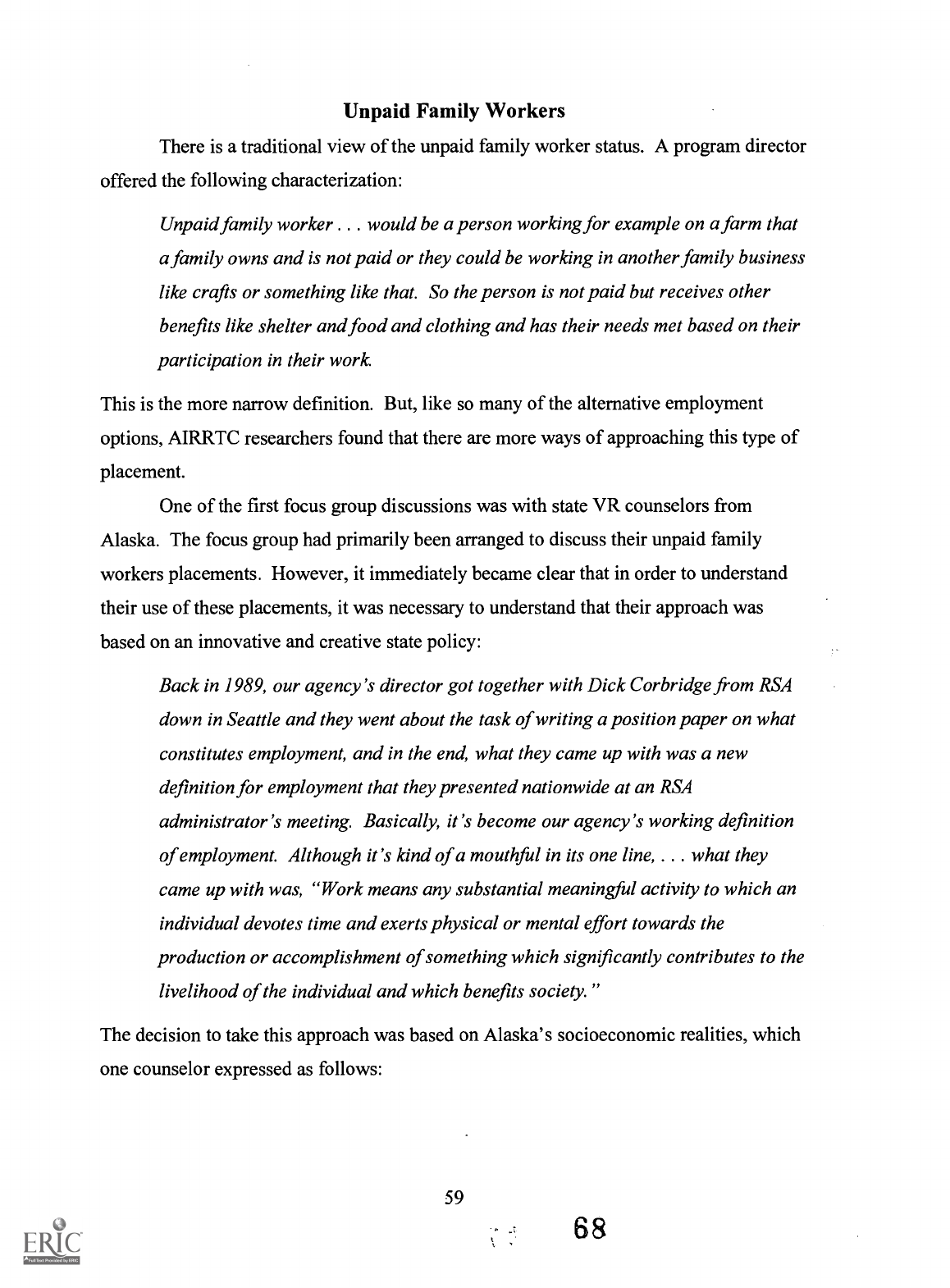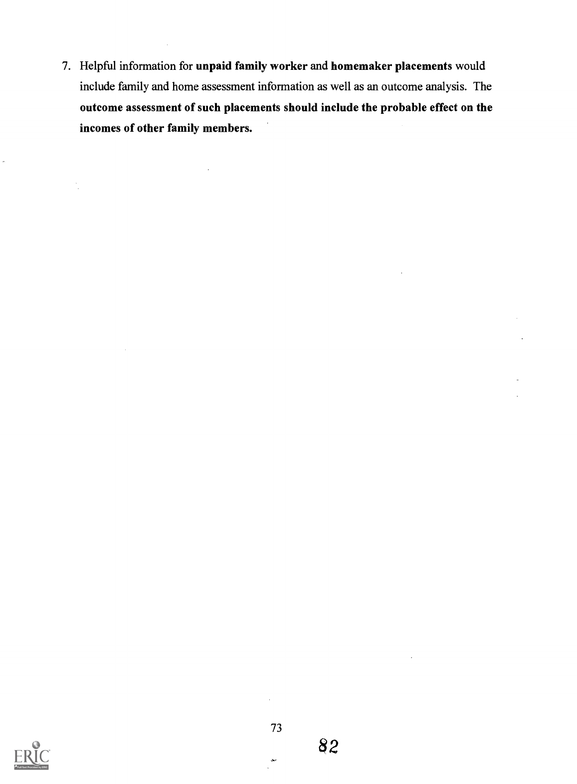 workshop programs; and (7) outcome assessments of unpaid family worker and