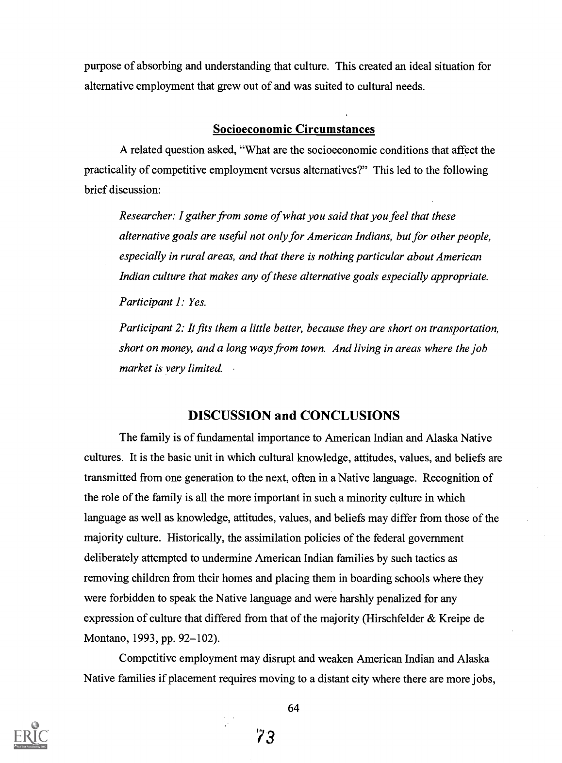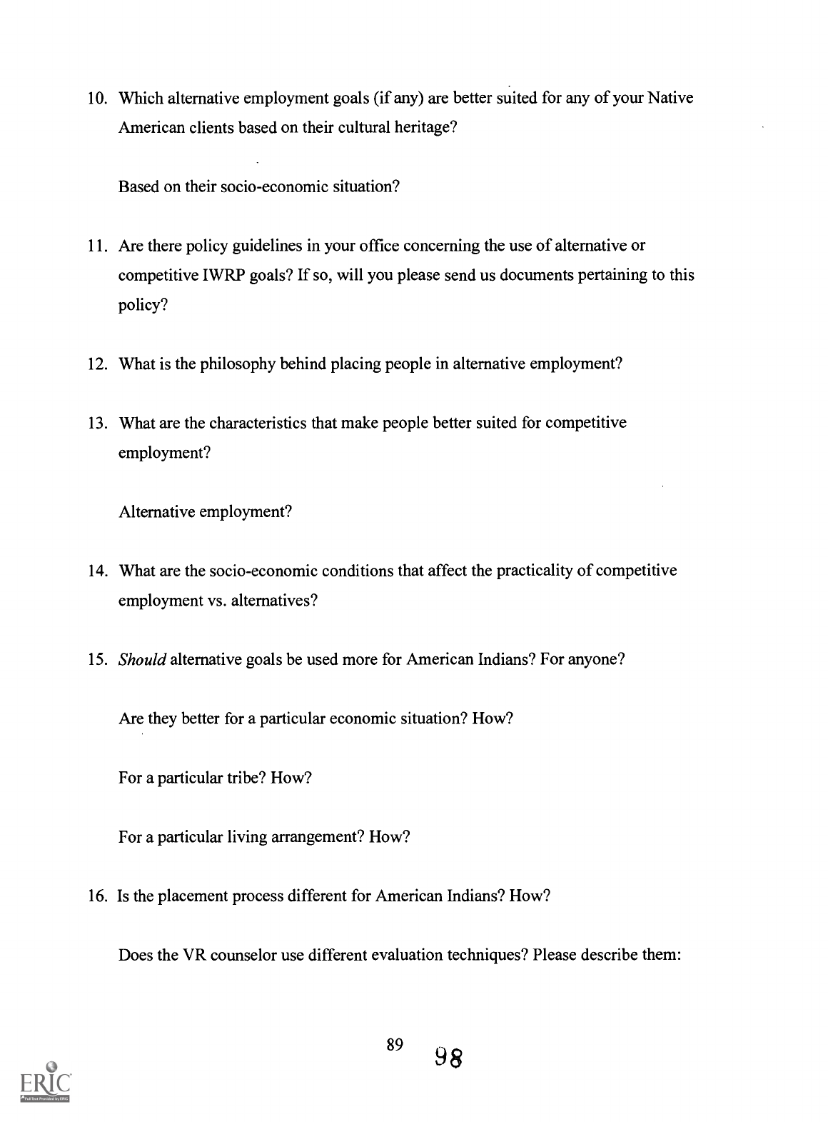 10. Which alternative employment goals (if any) are better suited for any of your Native