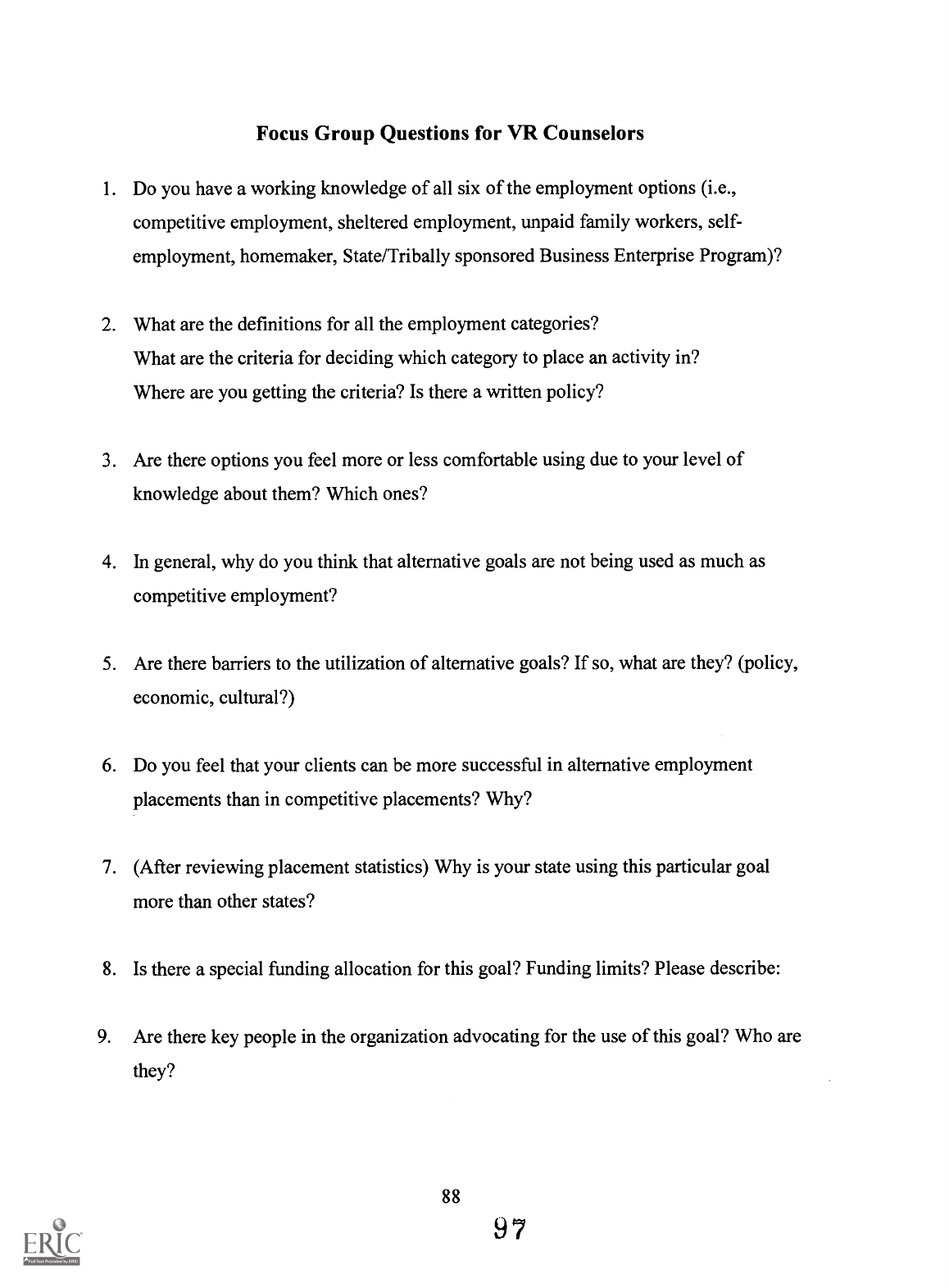 7. (After reviewing placement statistics) Why is your state using this particular goal