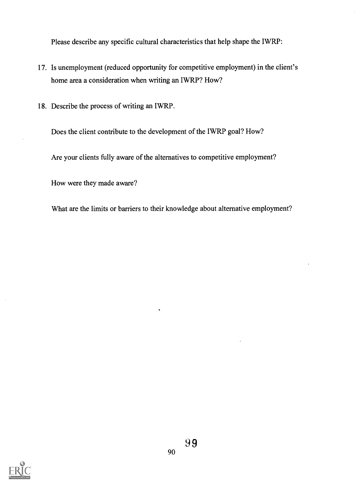 17. Is unemployment (reduced opportunity for competitive employment) in the client's