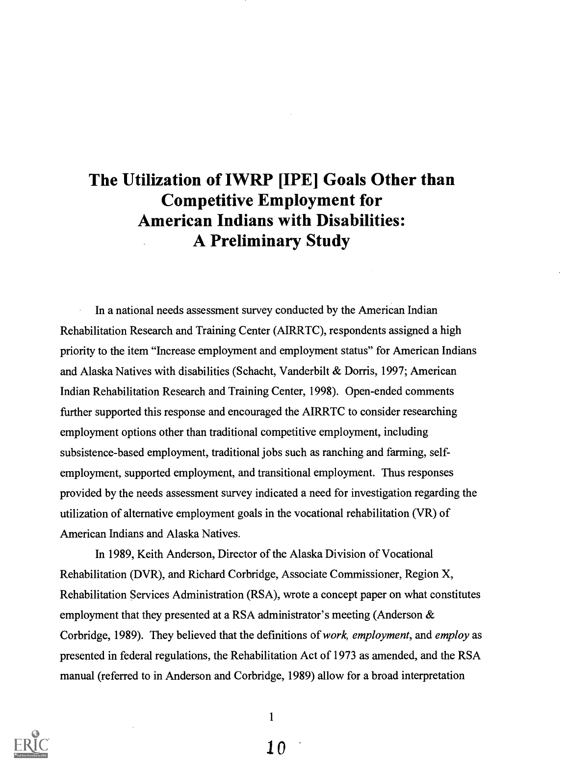 TITLE The Utilization of IWRP (IPE) Goals Other Than Competitive