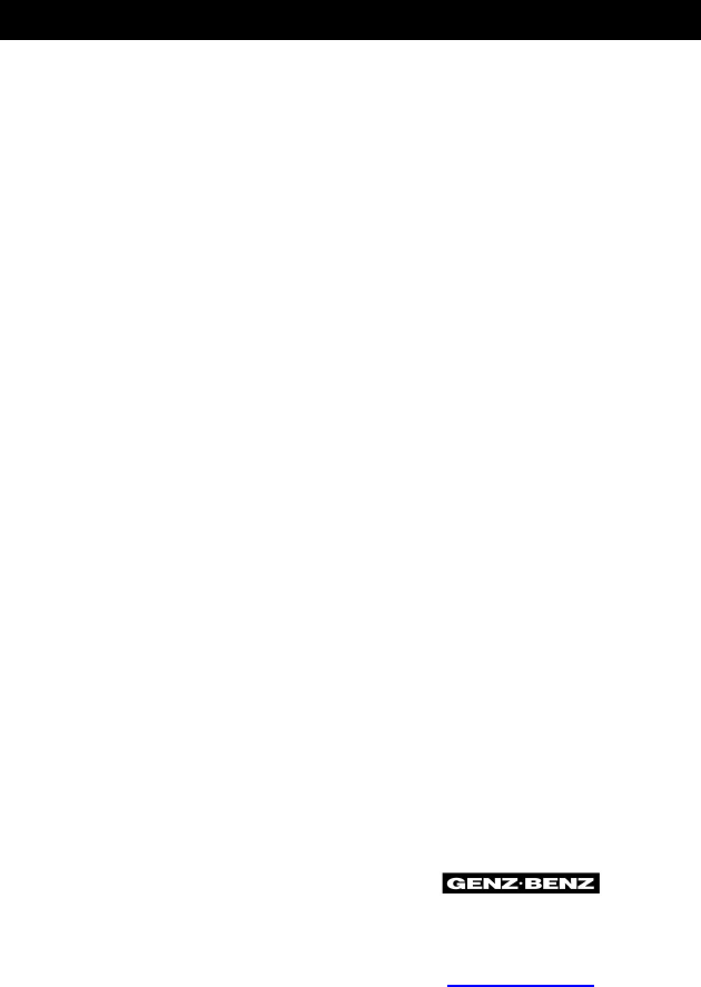 ALL WARRANTY SERVICE MUST BE PERFORMED BY A GENZ BENZ AUTHORIZED SERVICE