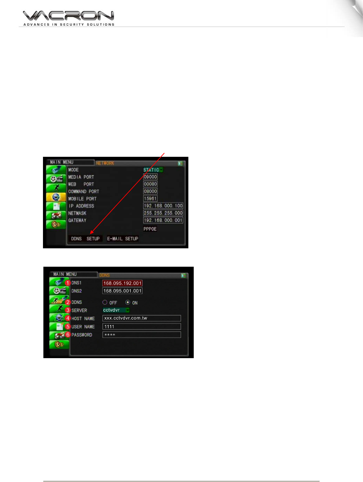 9. Go to your DVR to set the DDNS setting. (I use IE for demonstration but in the