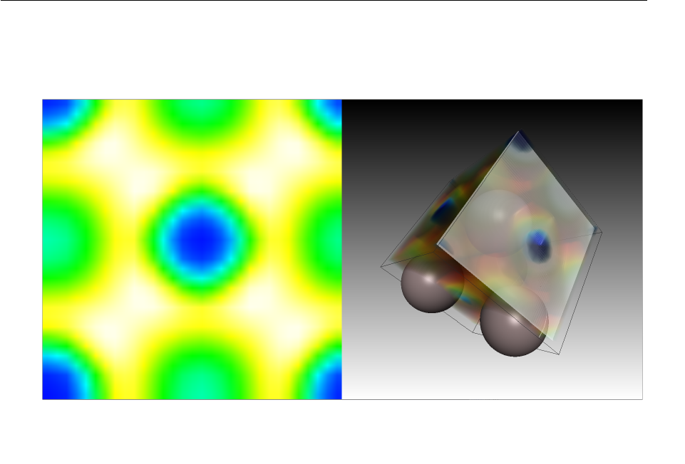 Figure 12: Unit cell and ELF data for aluminum visualised side by side, with volume raycasting
