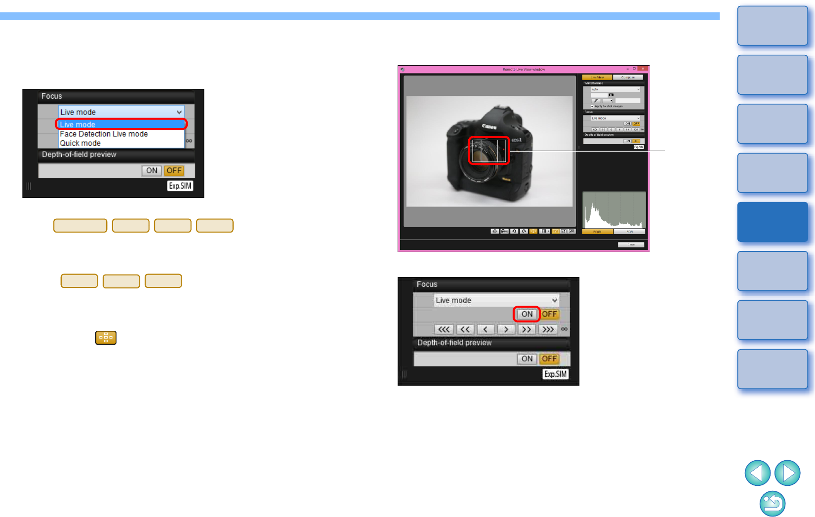 Focusing in Live Mode (Remote Live View Shooting) ......................... 42
