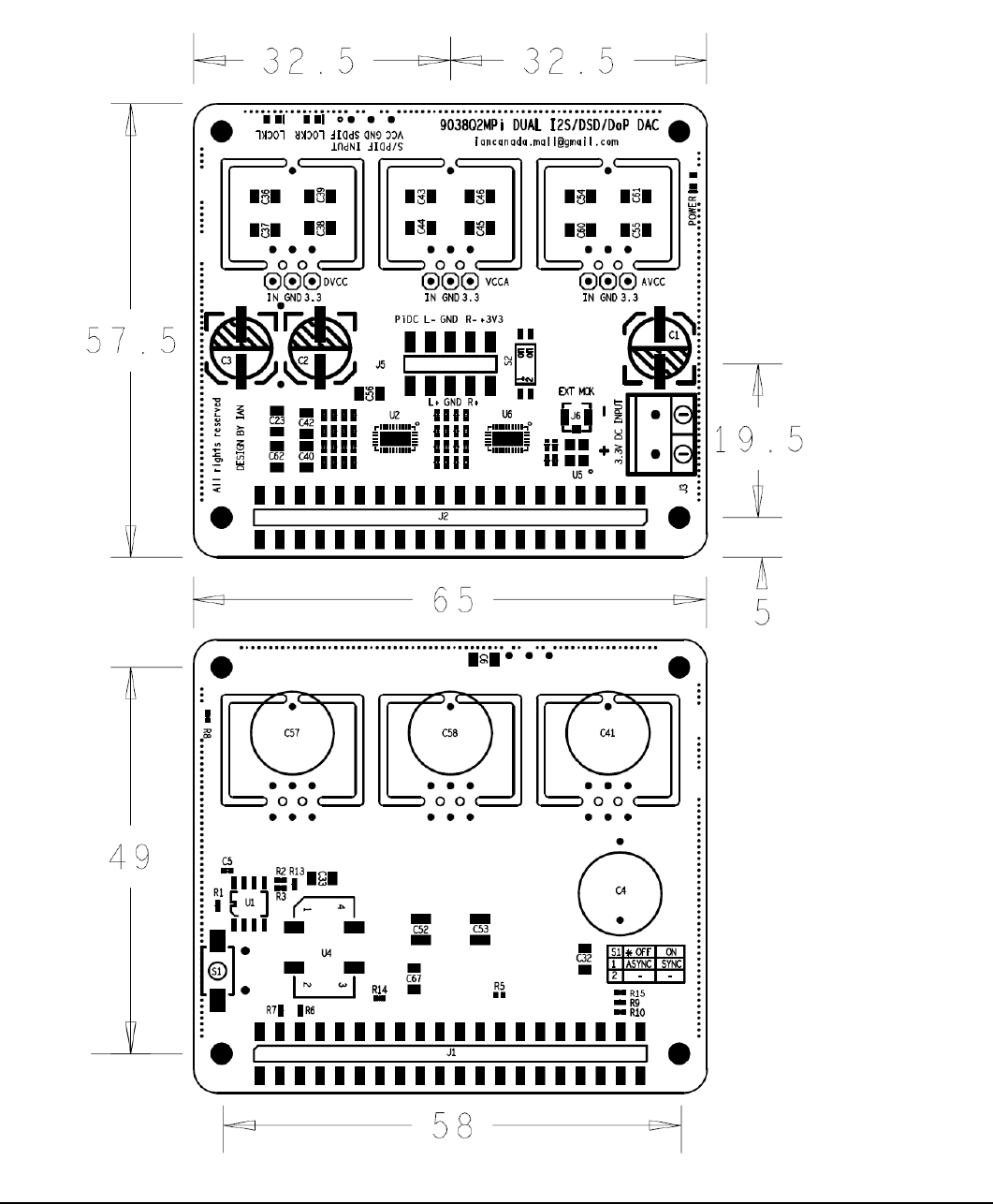 daughter boards from the DAC PCB first by using a side cuter. Then feed three independent 3.3V power supplies to