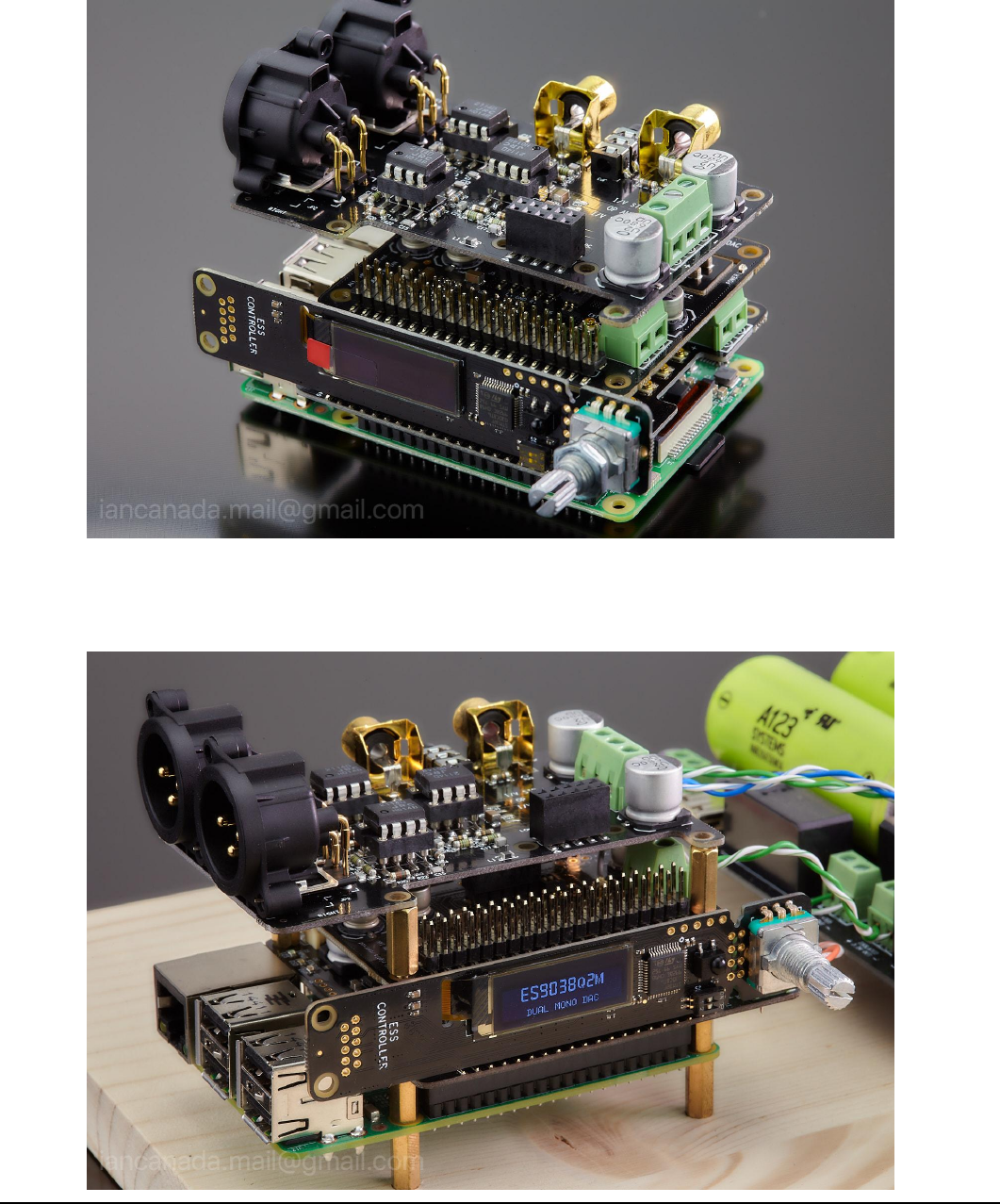 Raspberry Pi + ES9038Q2Mpi dual mono DAC HAT + ESS controller + I/V board
