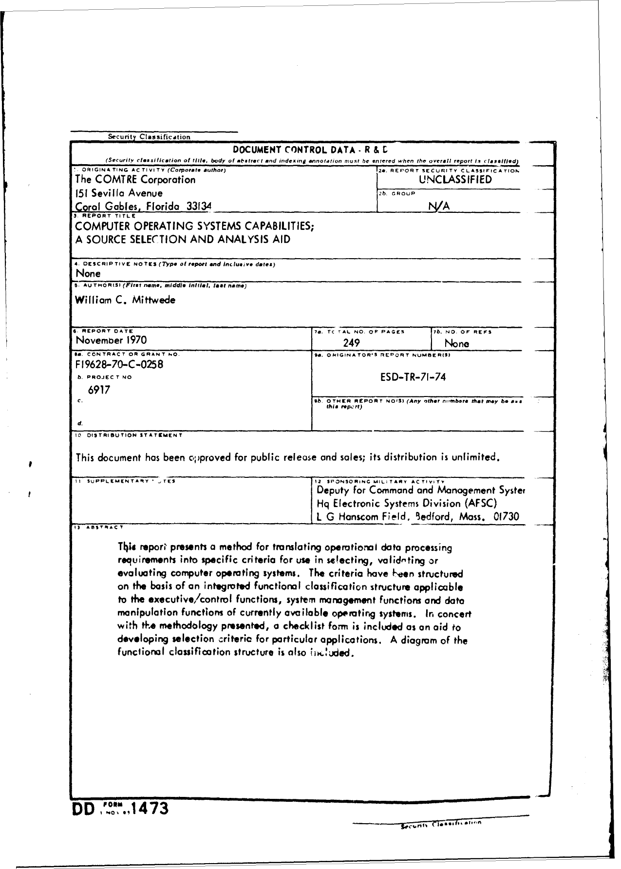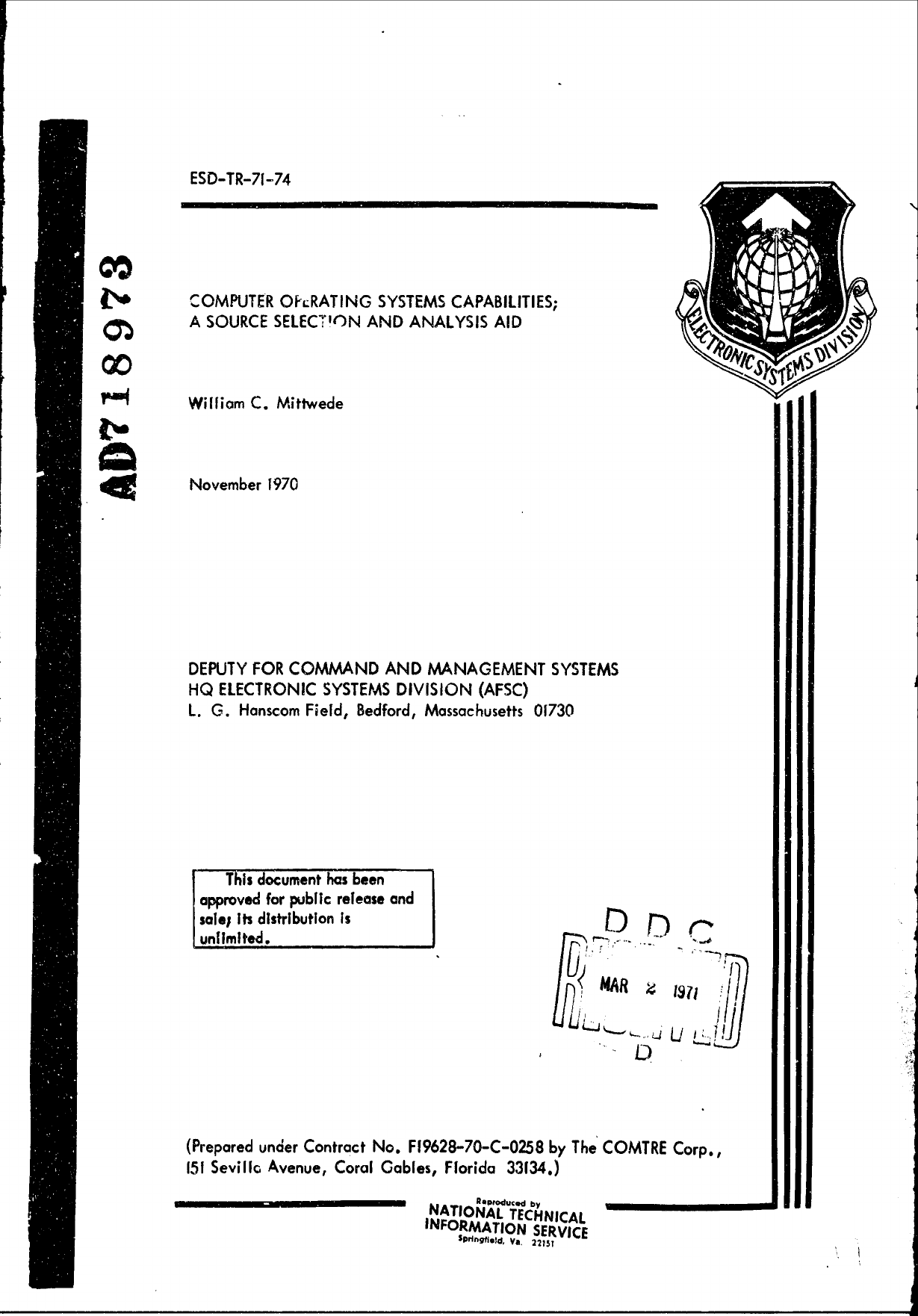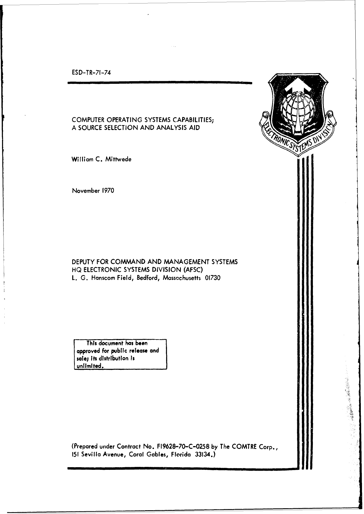 ESD TR 71 74_Computer_Operating_System_Capabilities_A_Source_Selection_and_Analysis_Aid_Nov70 74 Computer Operating System Capabilities A Source Selection And Analysis Aid Nov70
