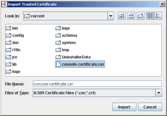 import the certificate(s) you just exported in the above steps into the Console’s <ARCSIGHT_
