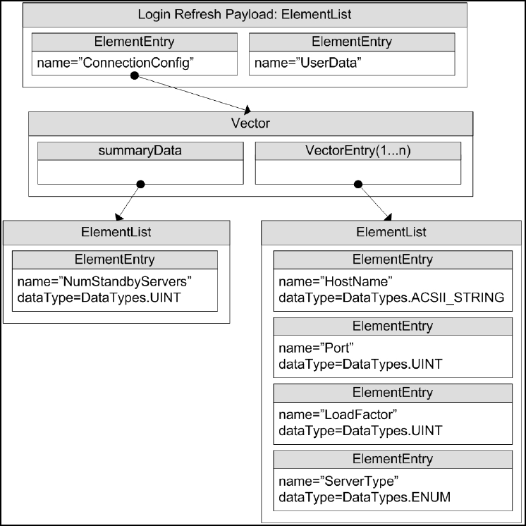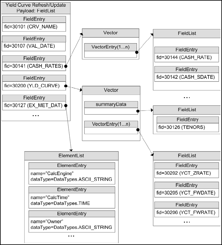 Each MapEntry key is the item’s name. The entry’s payload can be empty, contain a FieldList, or contain an ElementList,
