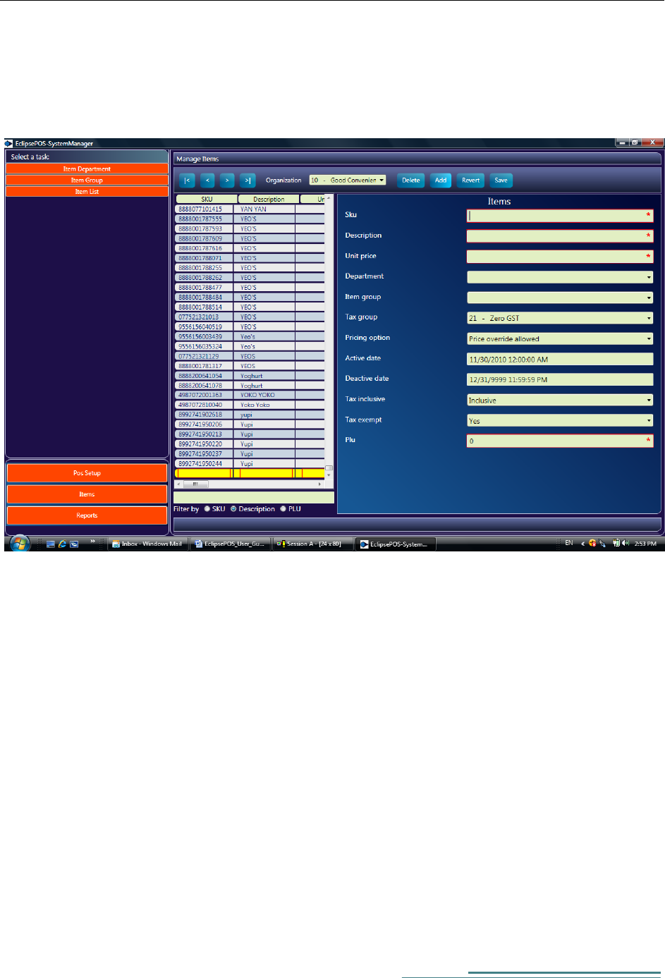 EclipsePOS System Manager ->Items ->Items List ->Add