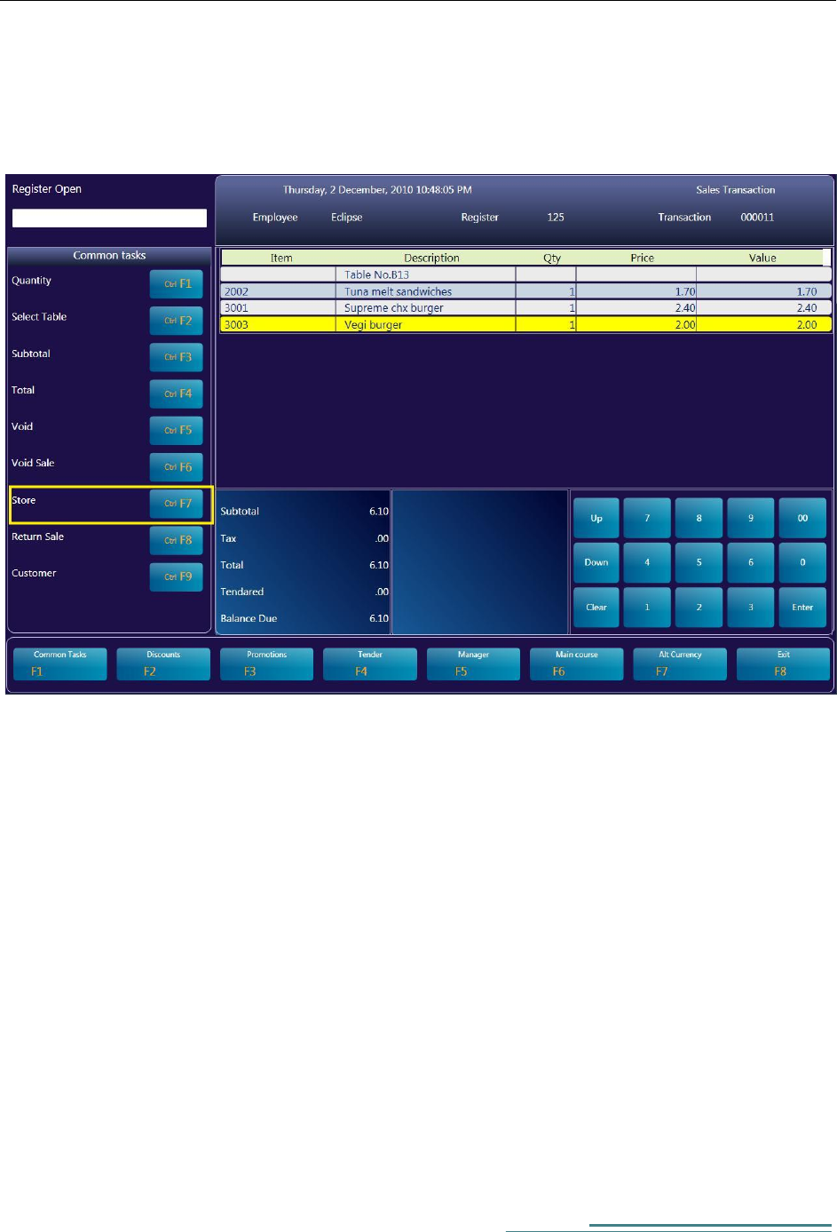 In a table serviced restaurant setup, receipt can be saved and recalled by table number.