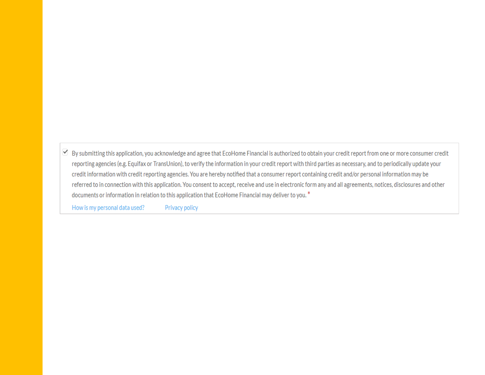Lastly, the Customer will review and authorize their credit report to be obtained and consent to receiving