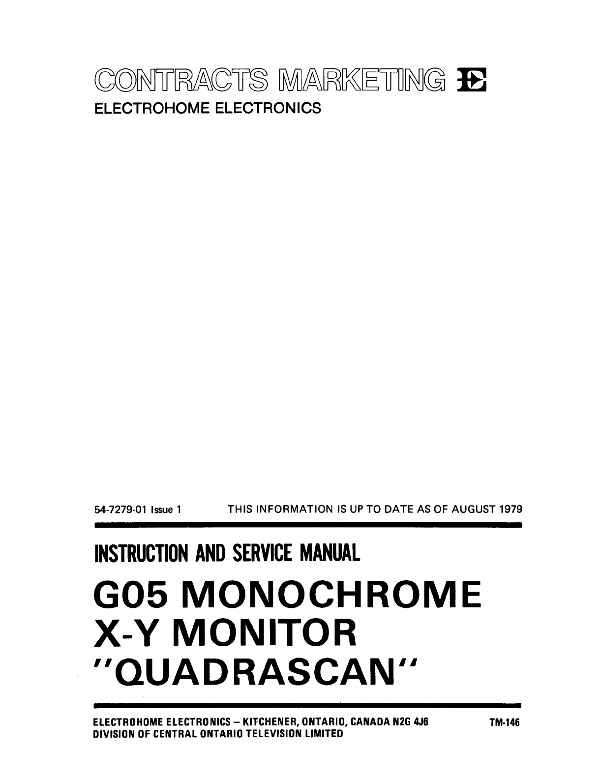 PDF Electrohome G05 801 Monochrome XY (Atari)(Issue 1 TM 146) [Ins. & Serv] [English]