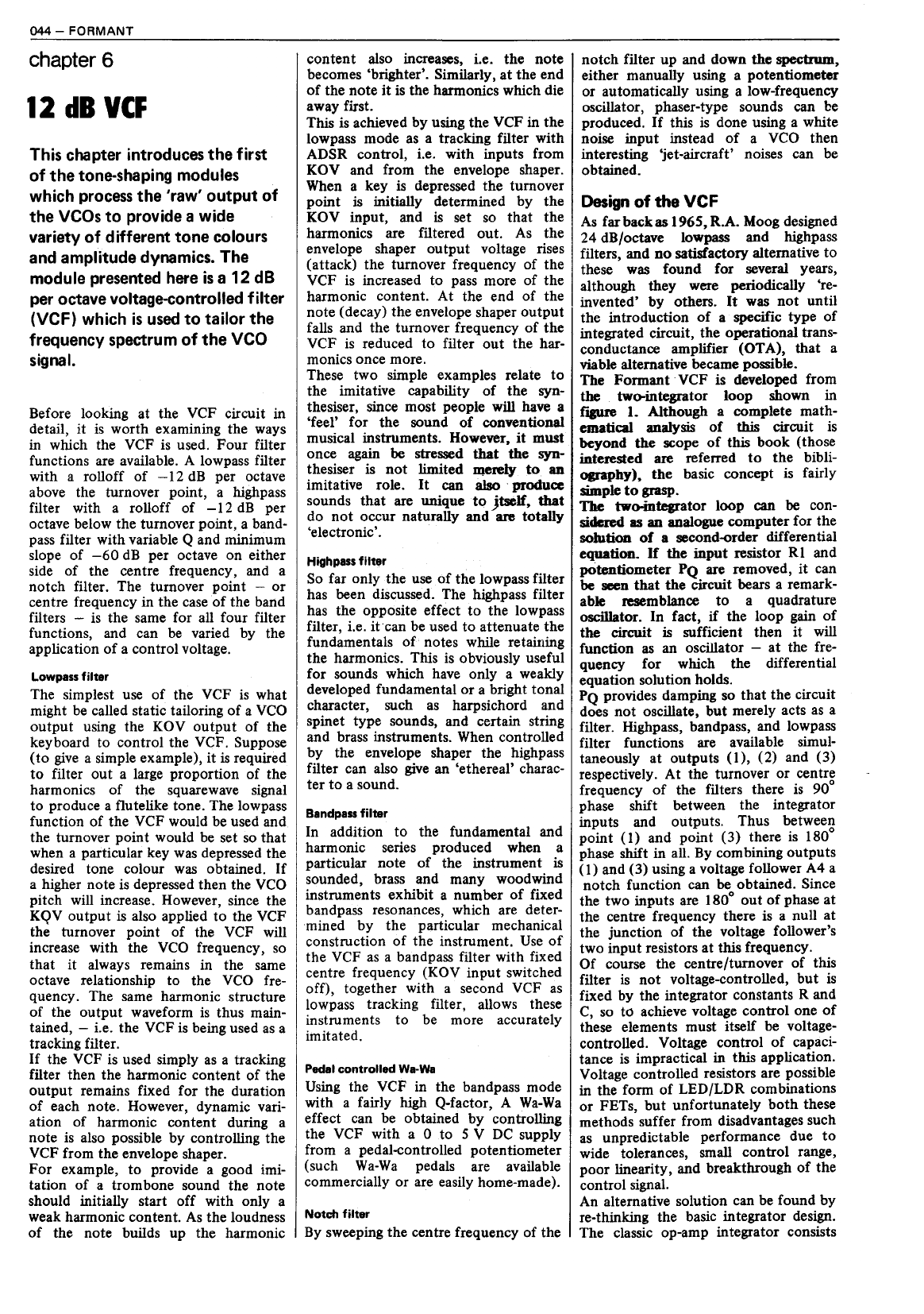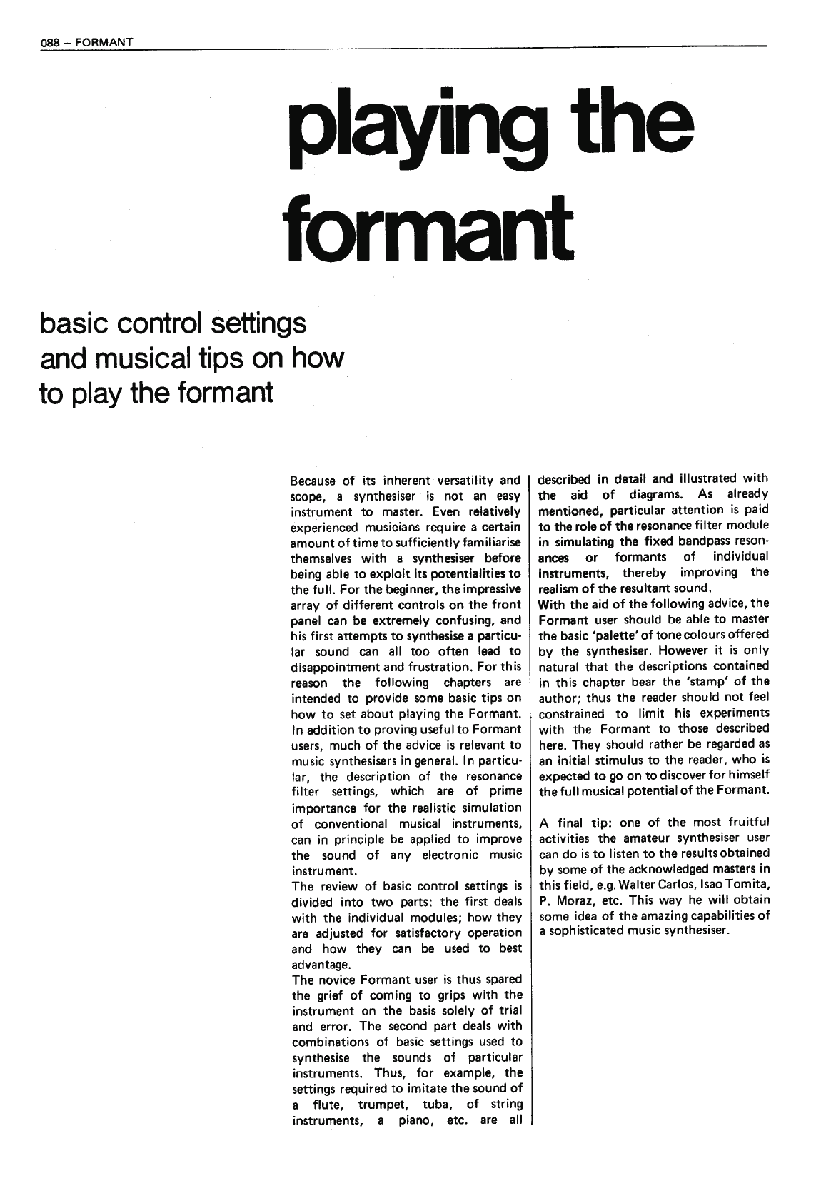 devoted to the Formant a sophisticated music synthesiser whose performance