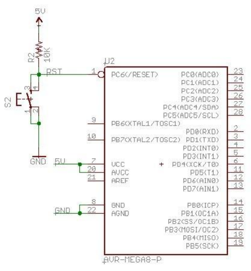 Not : Eğer mikrodenetleyiciniz Vcc ve GND pinlerine ters gerilim verirseniz yani Vcc pinine GND, GND pinine