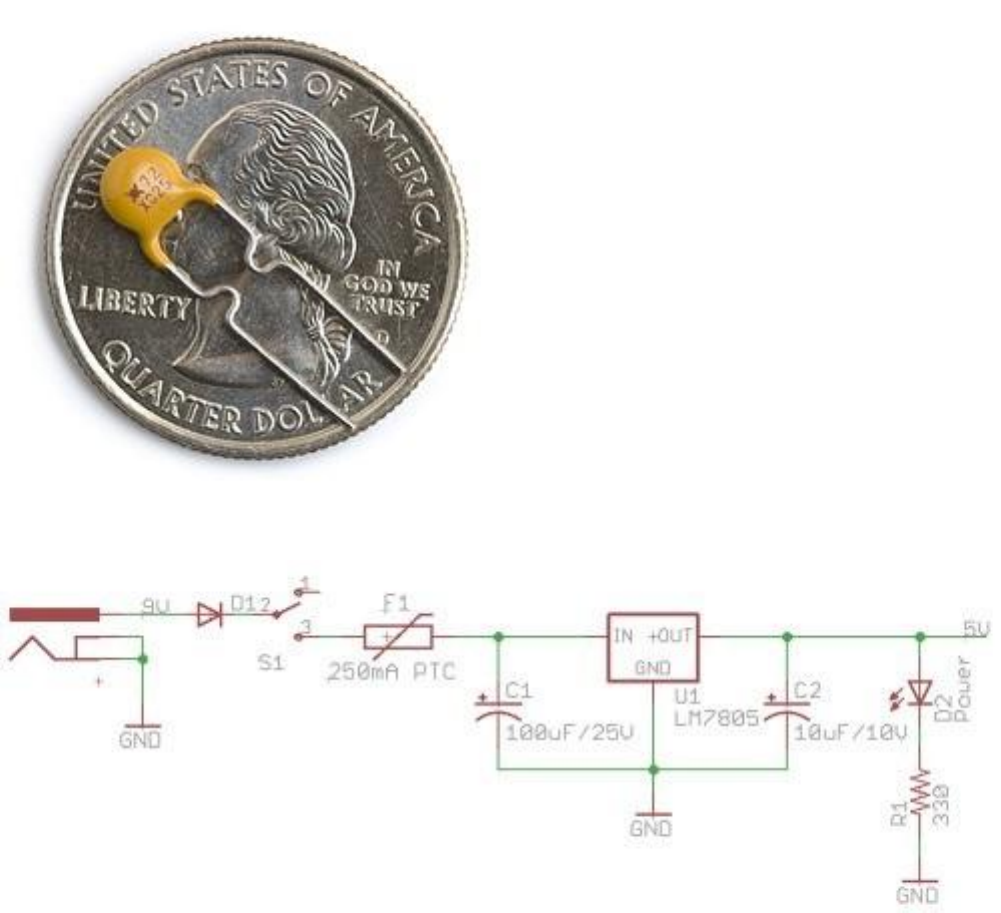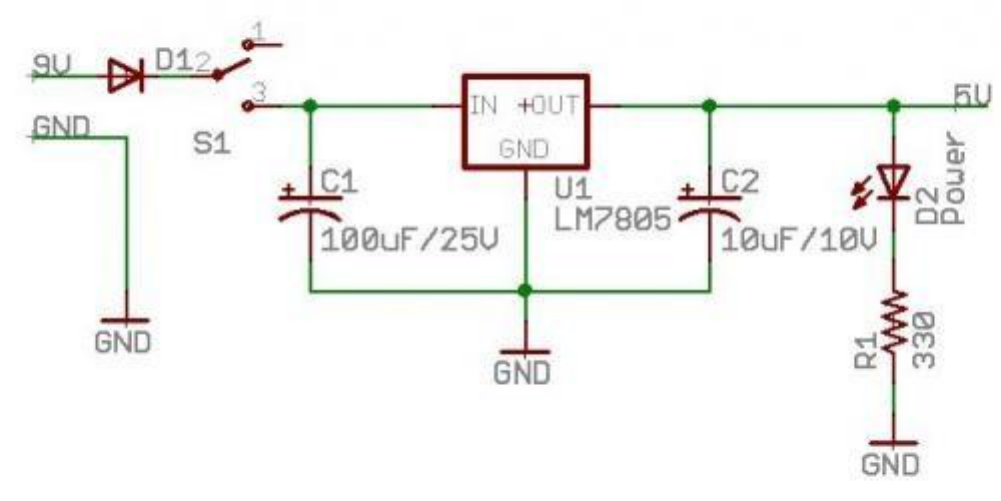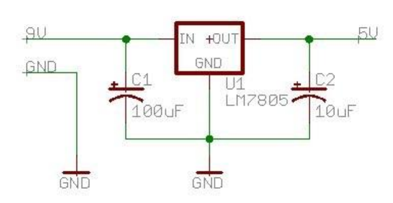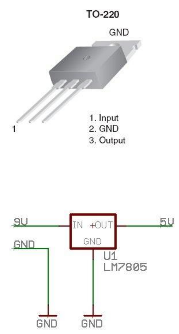 8-9v'luk bir gerilimi 5v a indirmek için farklı regülatörler kullanılmaktadır. Fakat en yaygını LM7805'dir. Bu