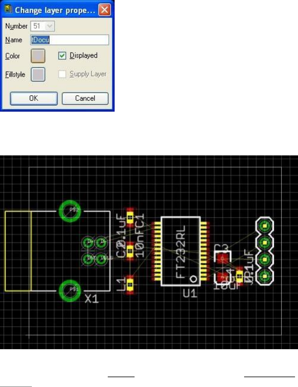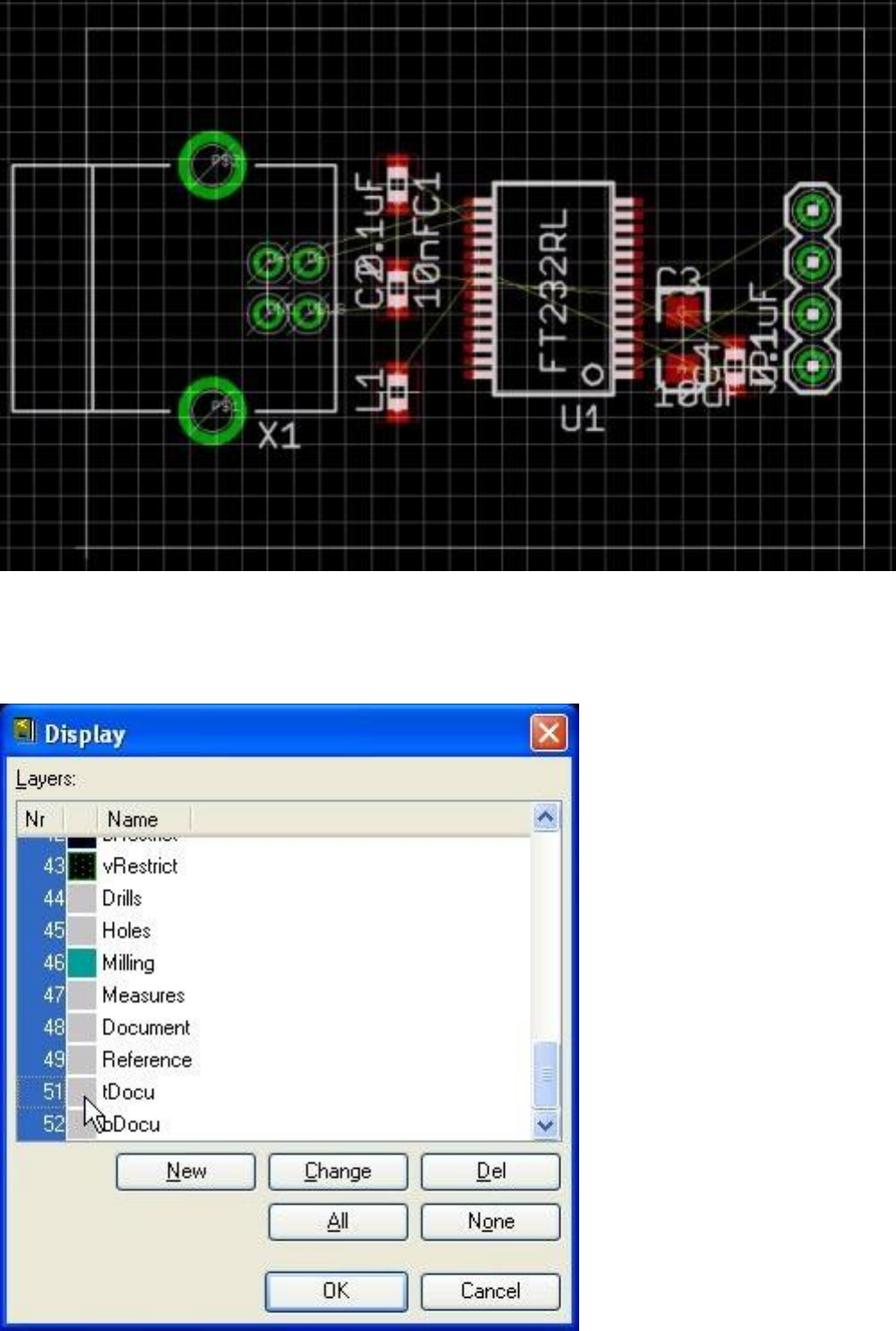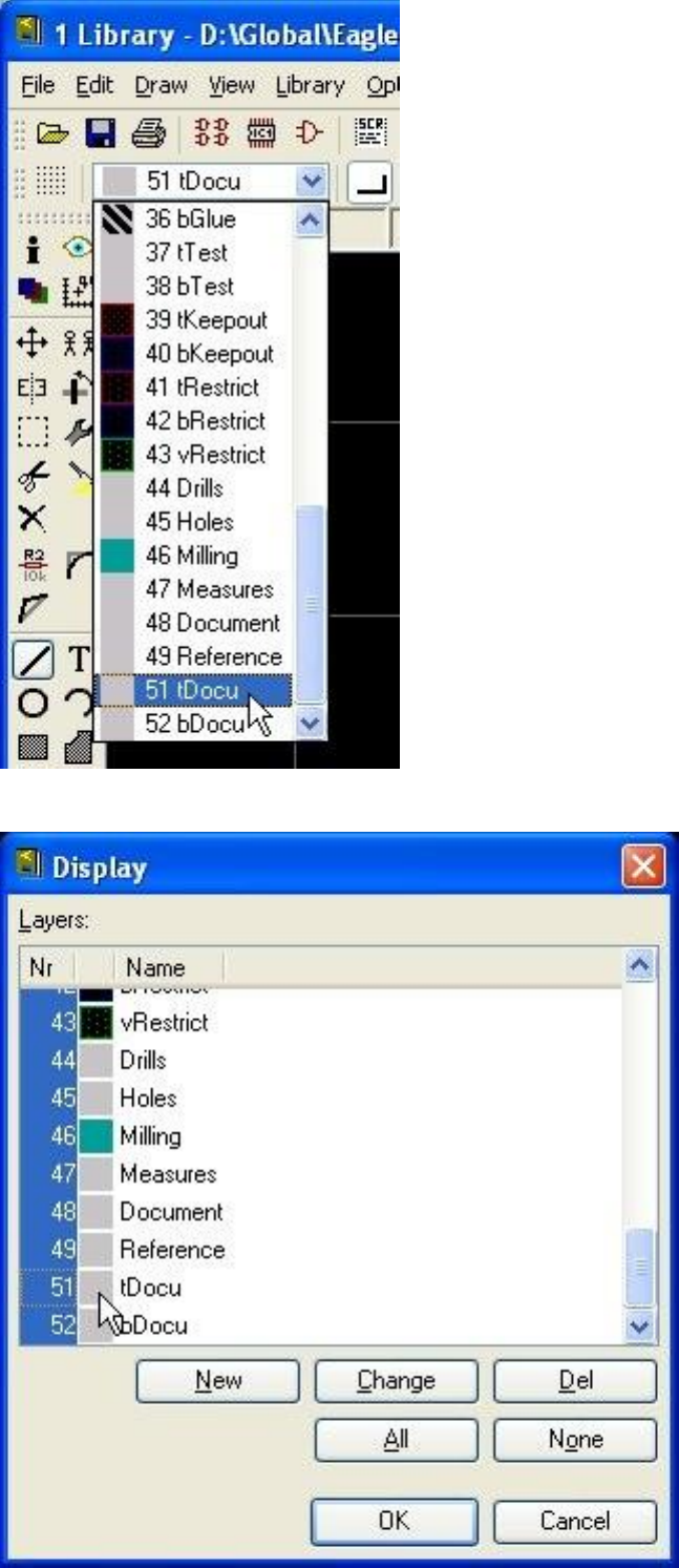 çubuğundan Display butonuna basıp tDocu katmanını seçiyoruz.