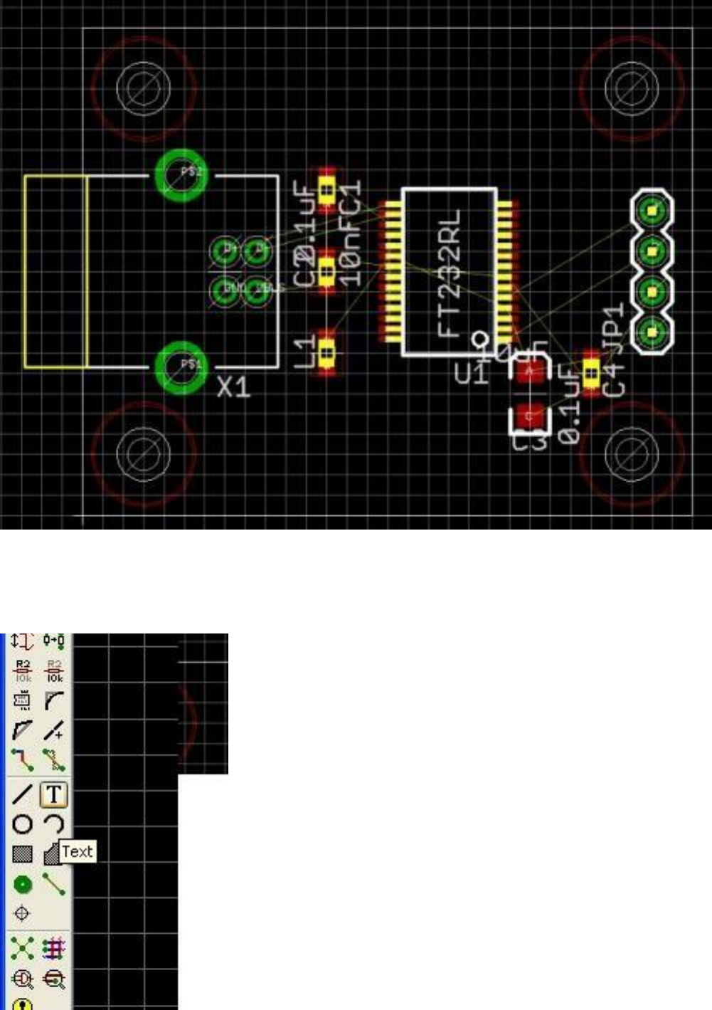 Text butonuna basıp önce TX yazdıktan sonra Esc ile işlemi tamamlayın. Sonra diğer pinleri de sırası ile RX,