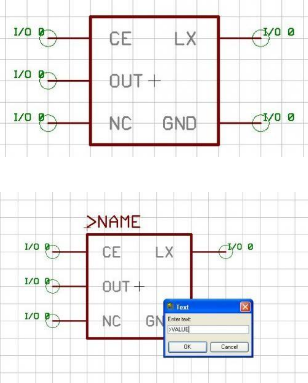 Son aşama olarak da >NAME ve >VALUE bilgilerini girip malzeme oluşturma işlemini tamamlıyoruz. Şimdi