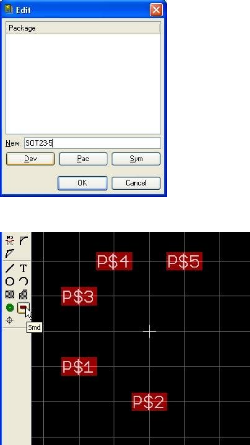 Library sekmesinden Packagei seçerek yeni bir kılıf tipi(SOT23-5) oluşturuyoruz.