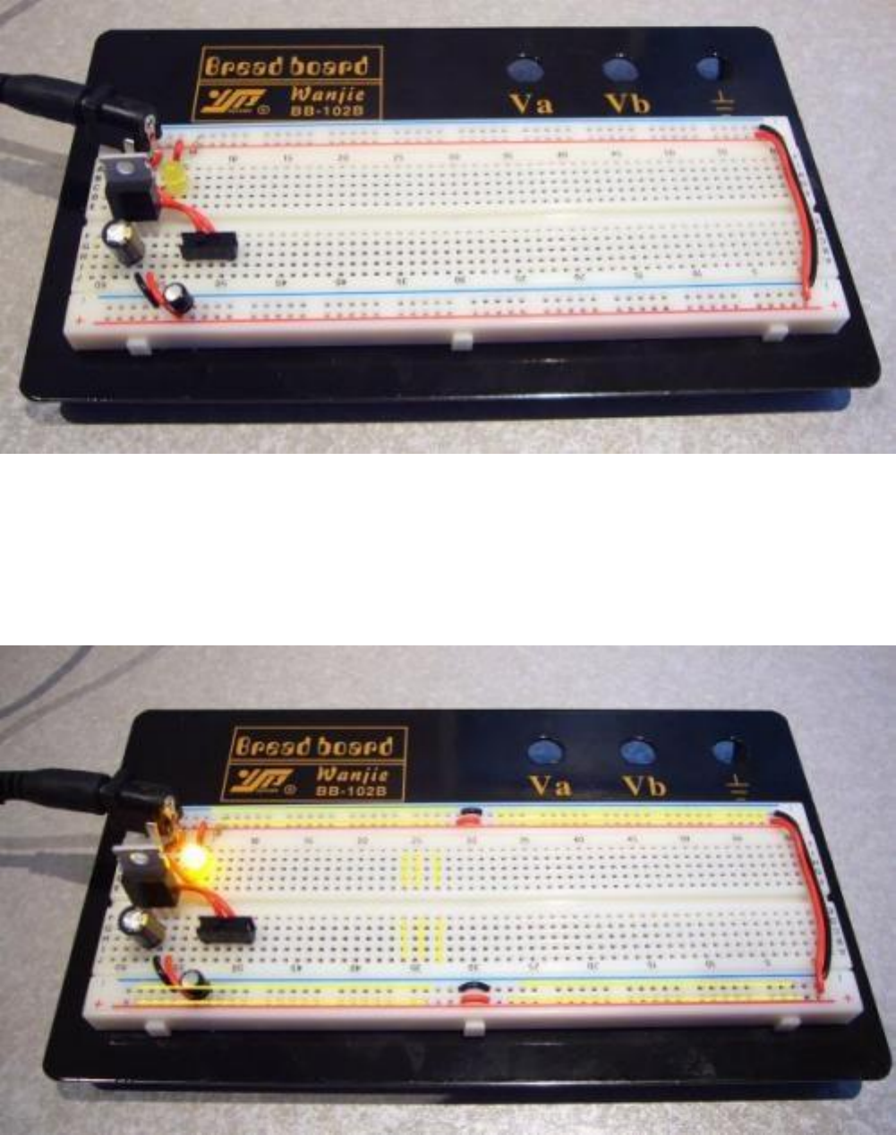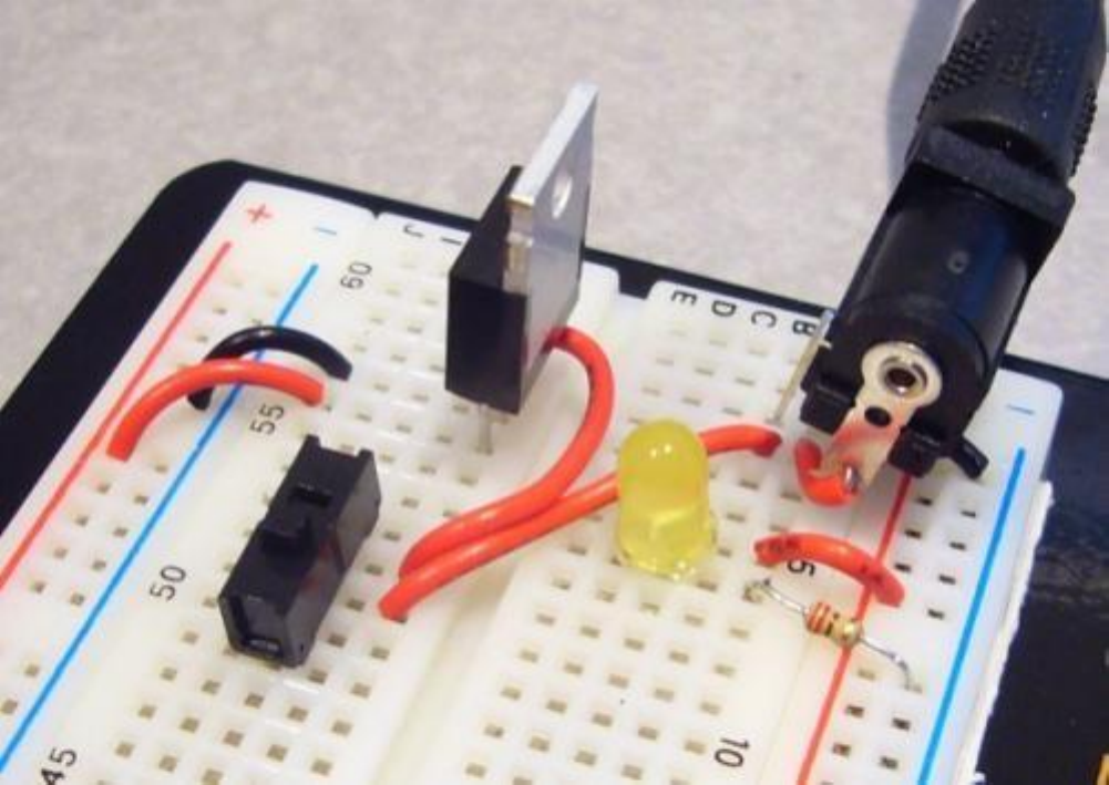 Breadboard üzerine bu regülatörü takıp aşağıdaki gibi bağlamalısınız.