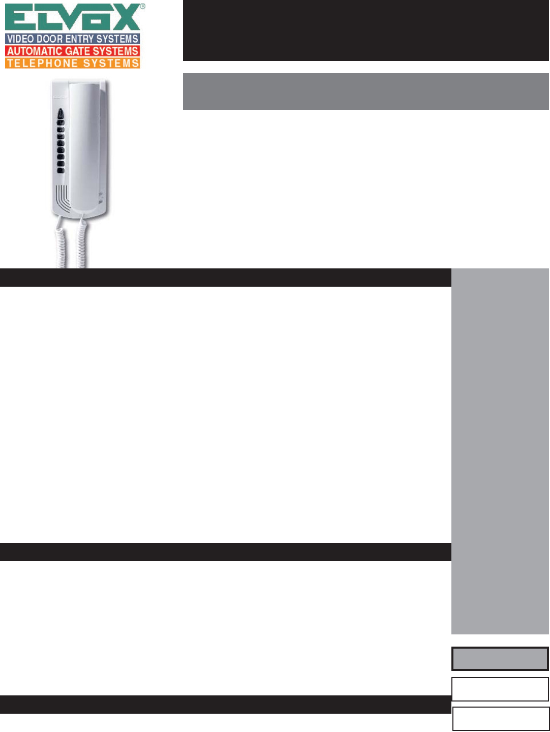 ELVOX 6201 2 Wire Tone Ring Apartment Intercom Handset