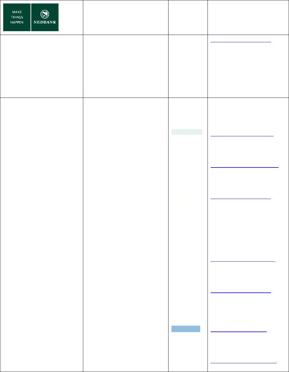 Nedbank:AgribusinessPleaseenquirefromthebank.011 710 4000