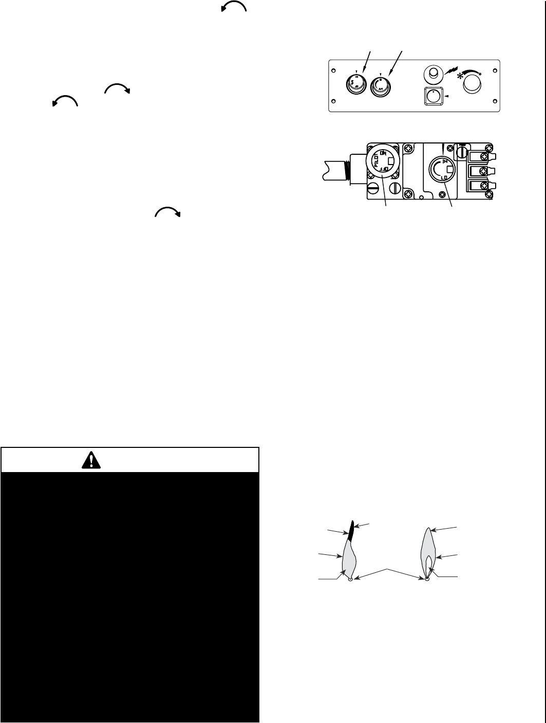 8. Lorsque la veilleuse est allumée, tournez le bouton de contrôle du gaz dans