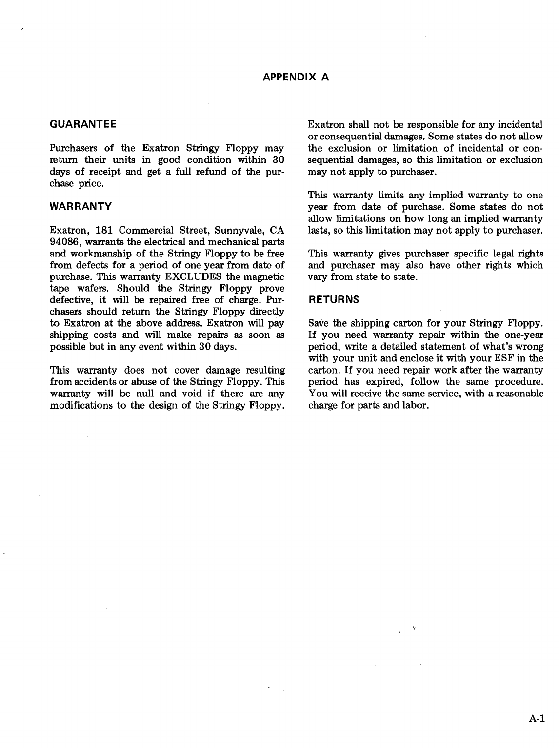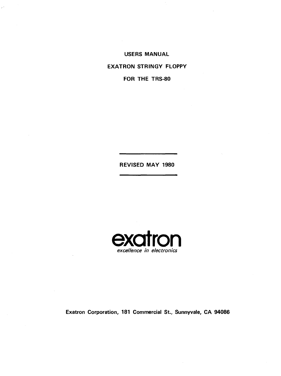 Exatron Stringy Floppy Users Manual (1980)(Exatron Corporation) 1980 Corporation