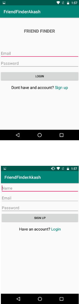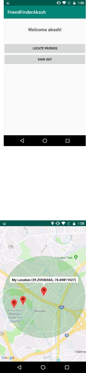 • Clicking on the button LOCATE FRIENDS will open a map activity which shows all the