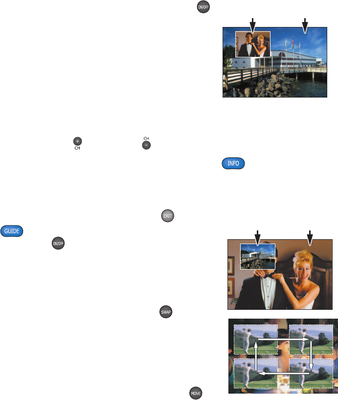 screen, simply MOVE the PIP screen to a different corner of your TV screen.