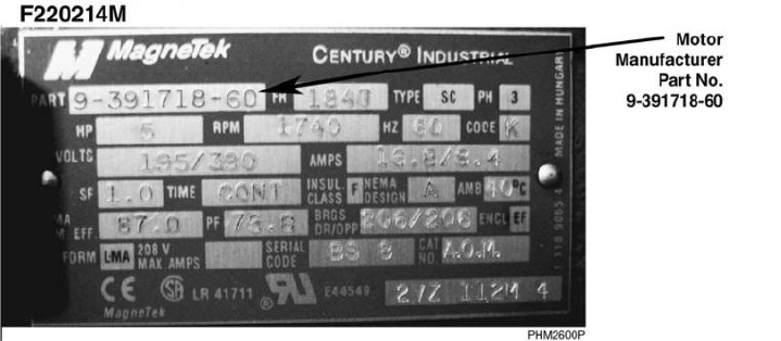 - Motor Manufacturer Part Number Location on the Motor’s Serial Plate