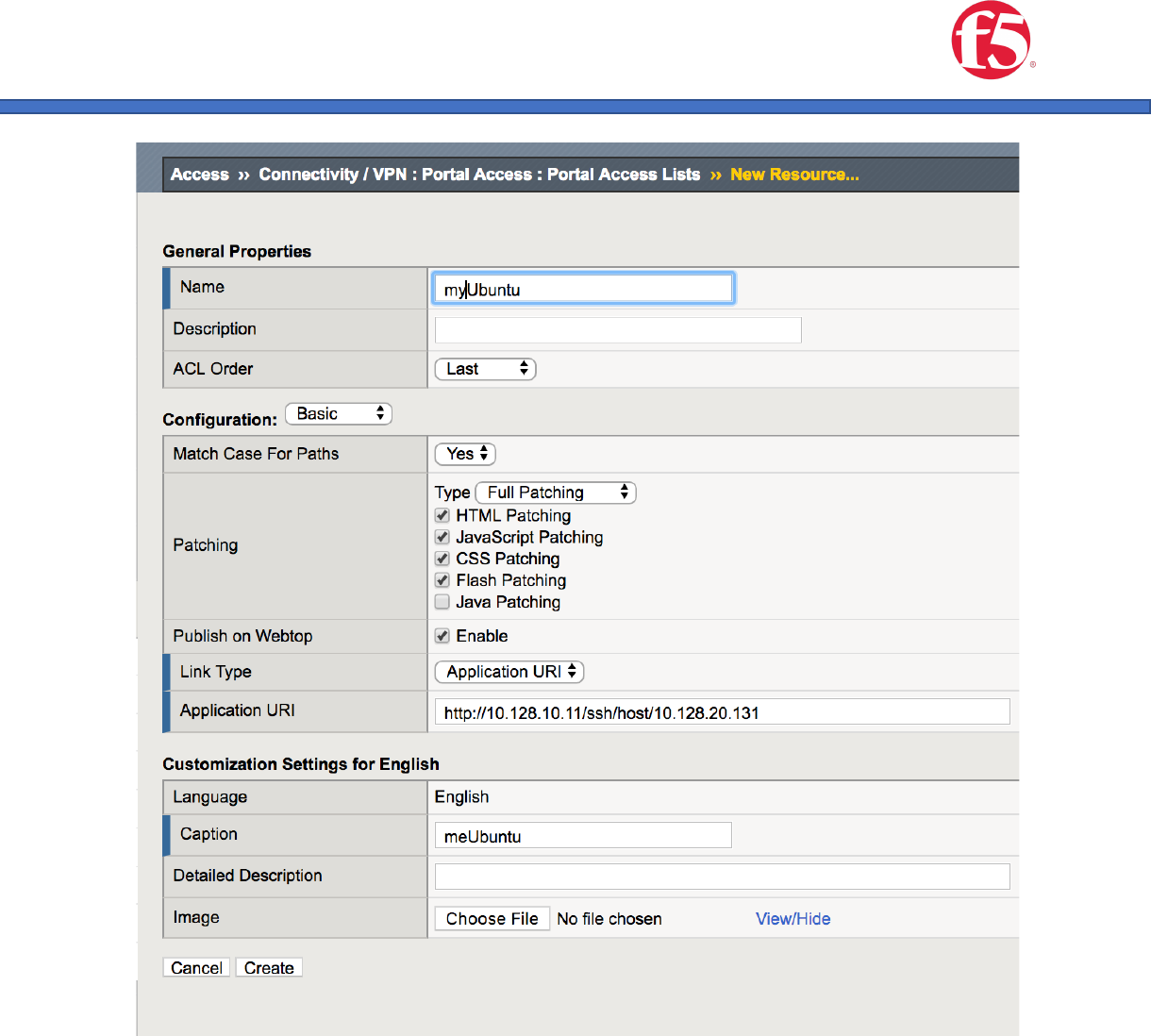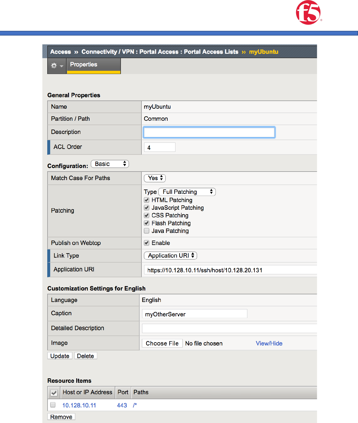 For more information on portal resource configuration see https://support.f5.com/kb/en-
