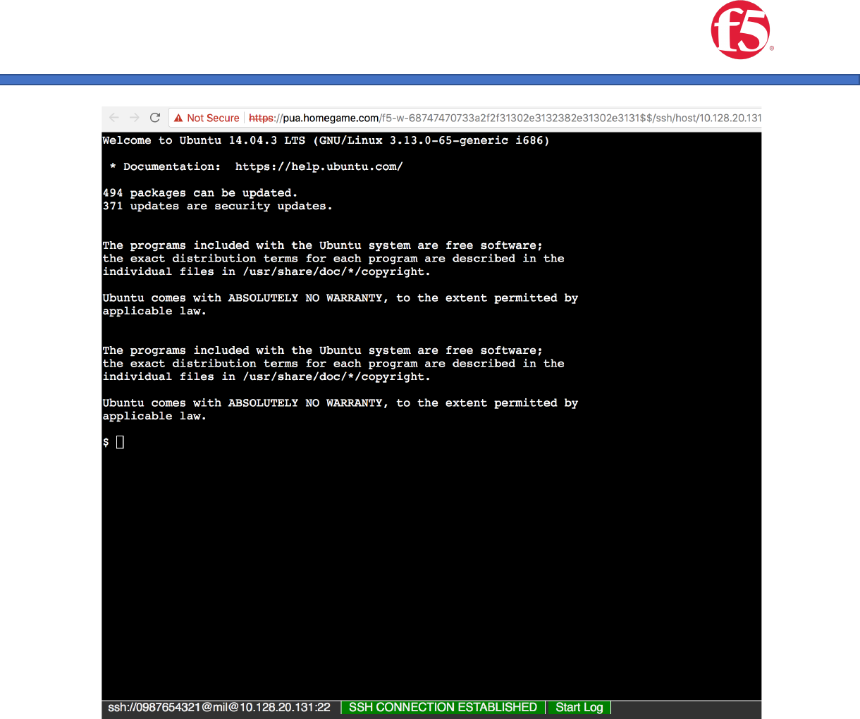 • F5 PUA deployed using steps outlined in F5 Privileged User Access Deployment Guide