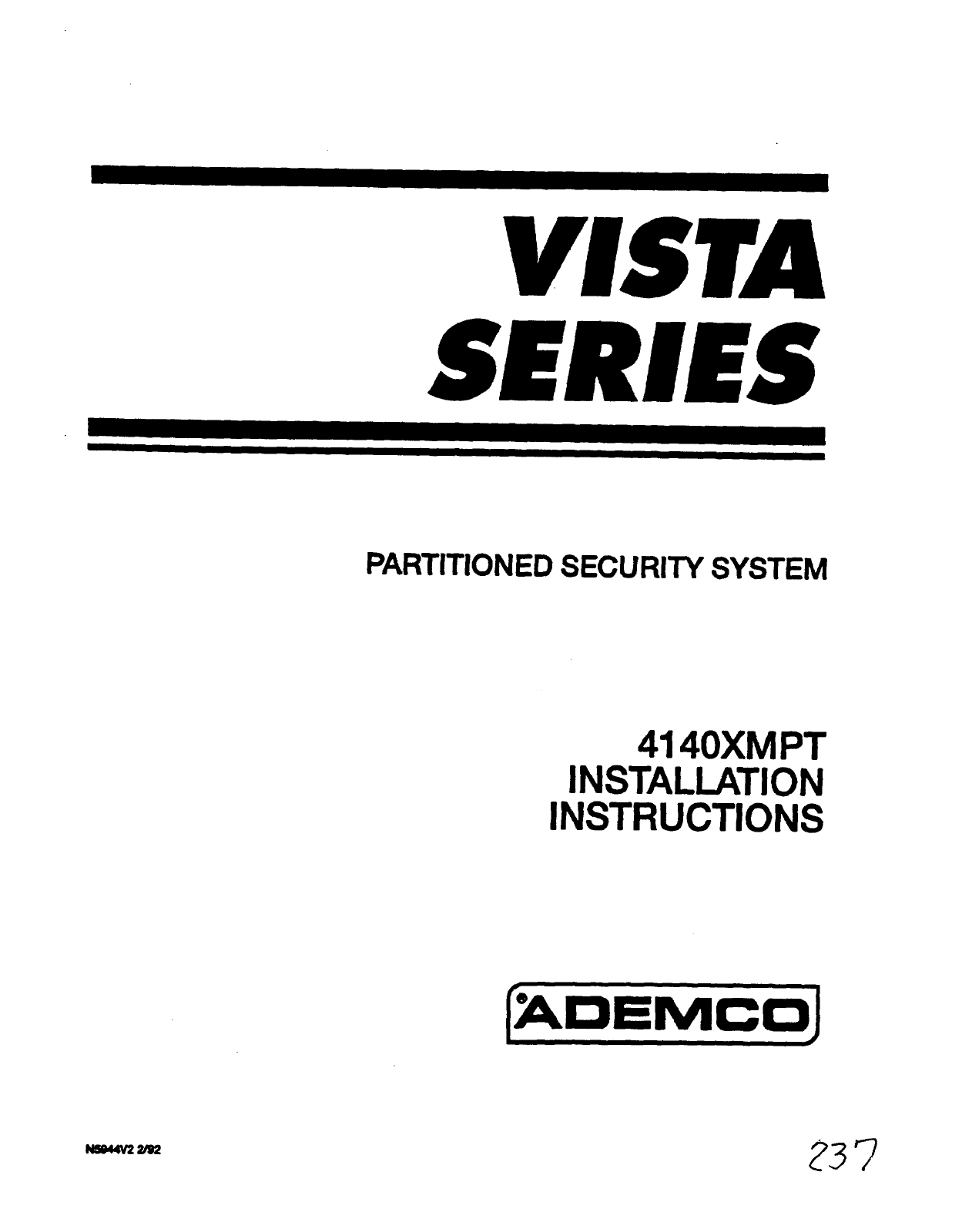 the VISTA 4140XMPT system, and provide instructions for installing abasic