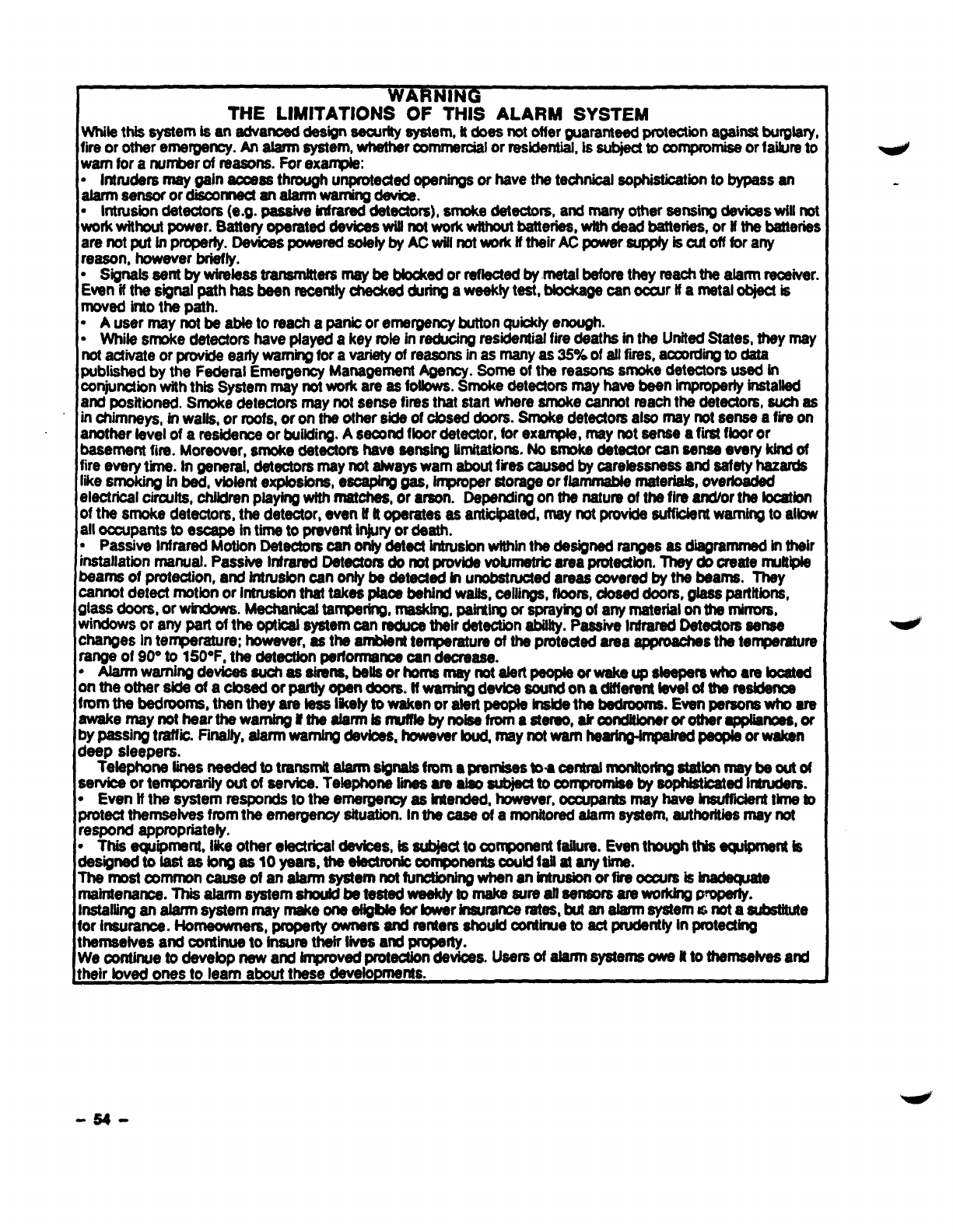 THE LIMITATIONS OF THIS ALARM SYSTEM