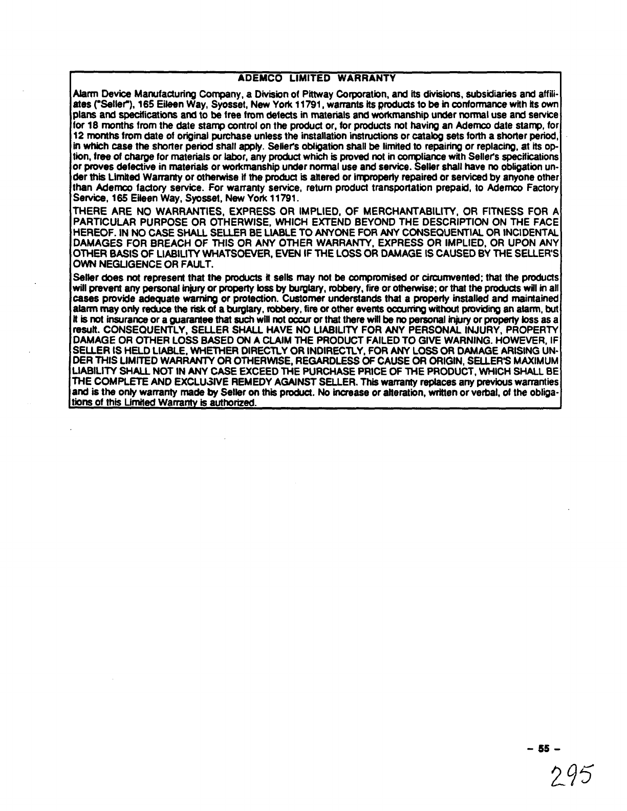 ADEMCO LIMITED WARRANTY