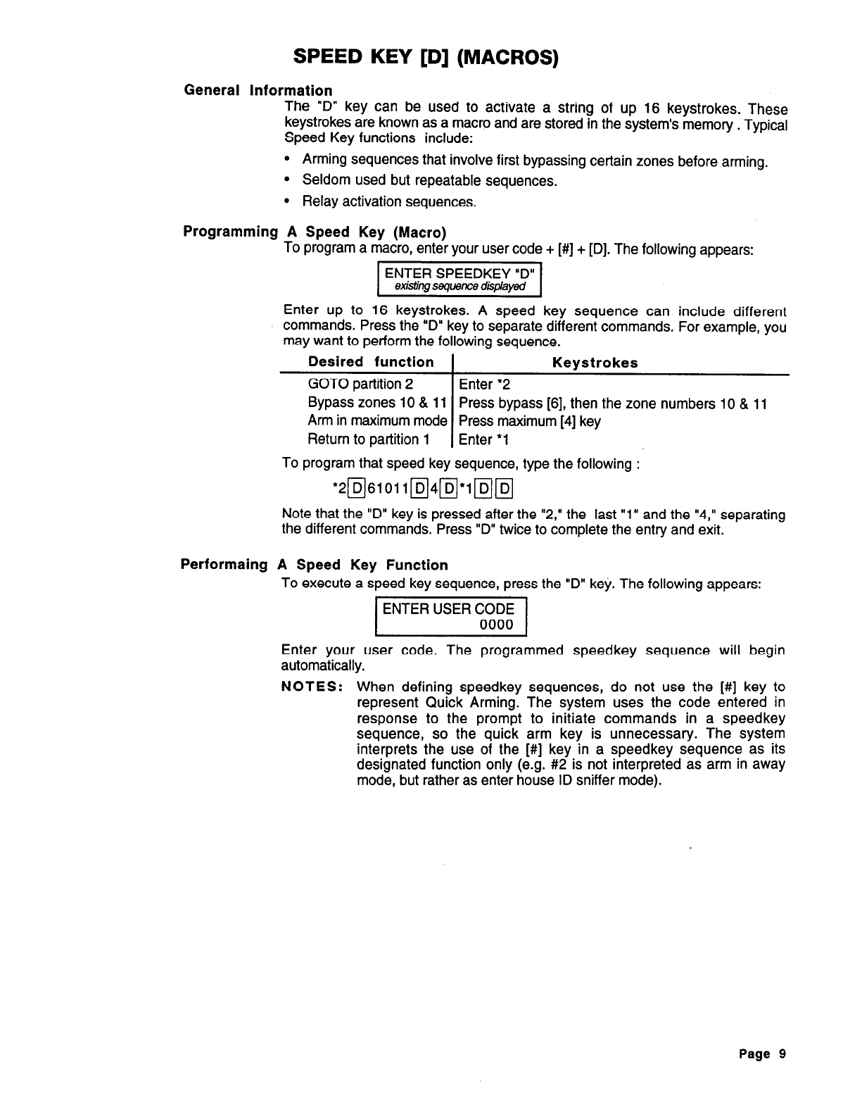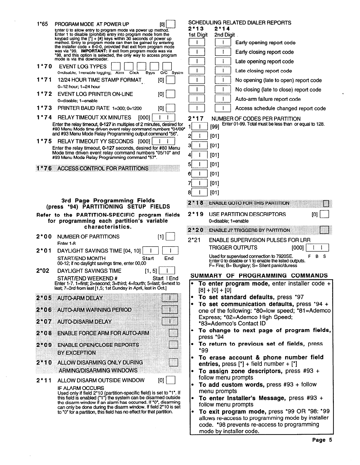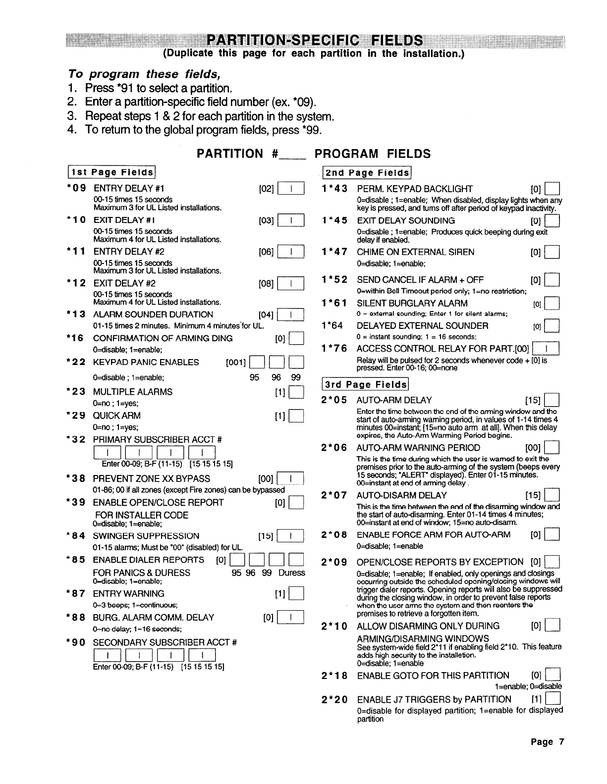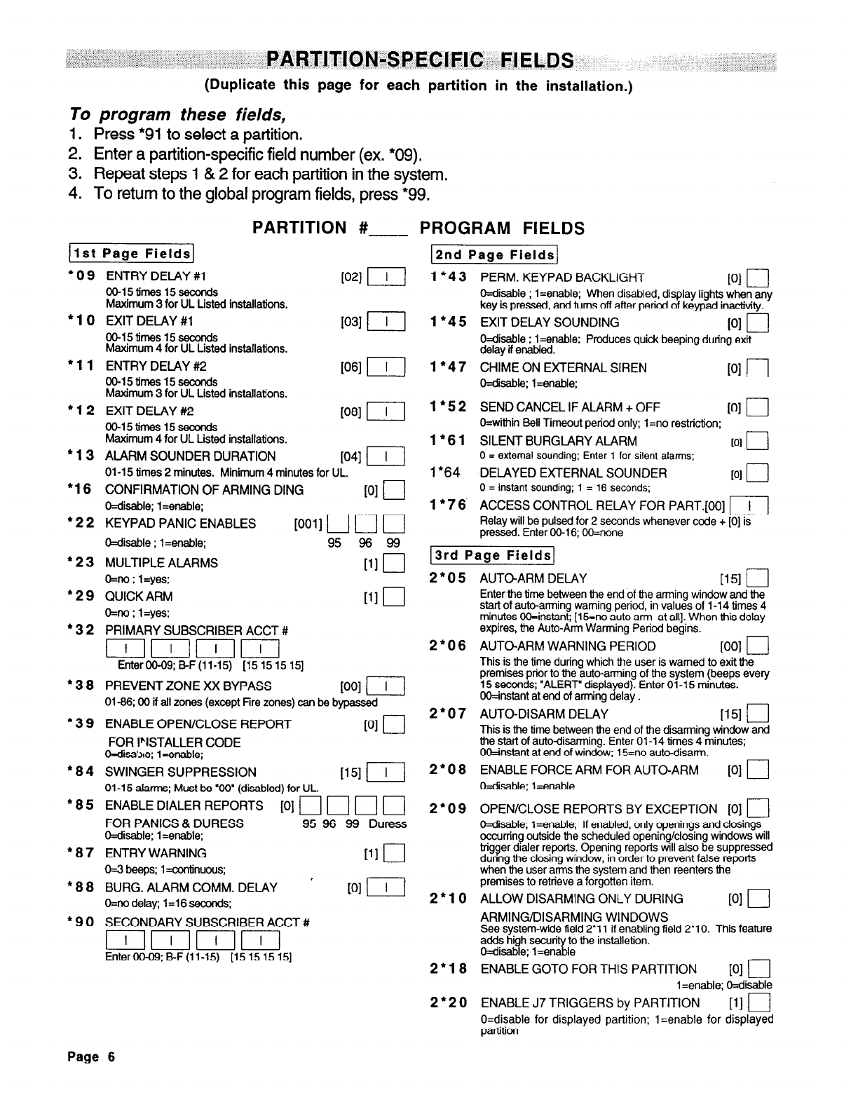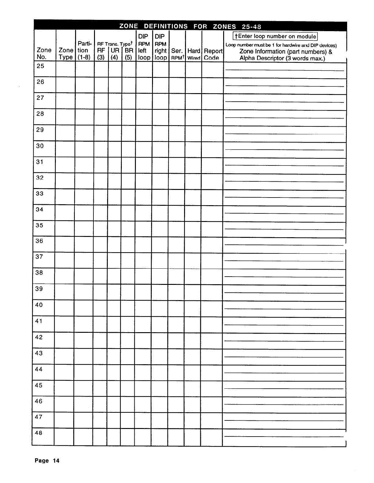 RESPONSE TYPES: 00 = Disabled zone; 01 = Entry/Exit #l;