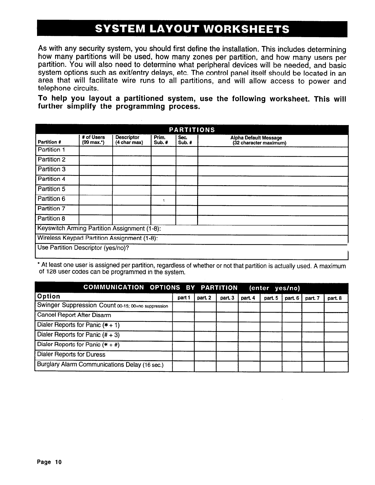 Enter partition in which keyswitch used, 1-8; Oaisable
