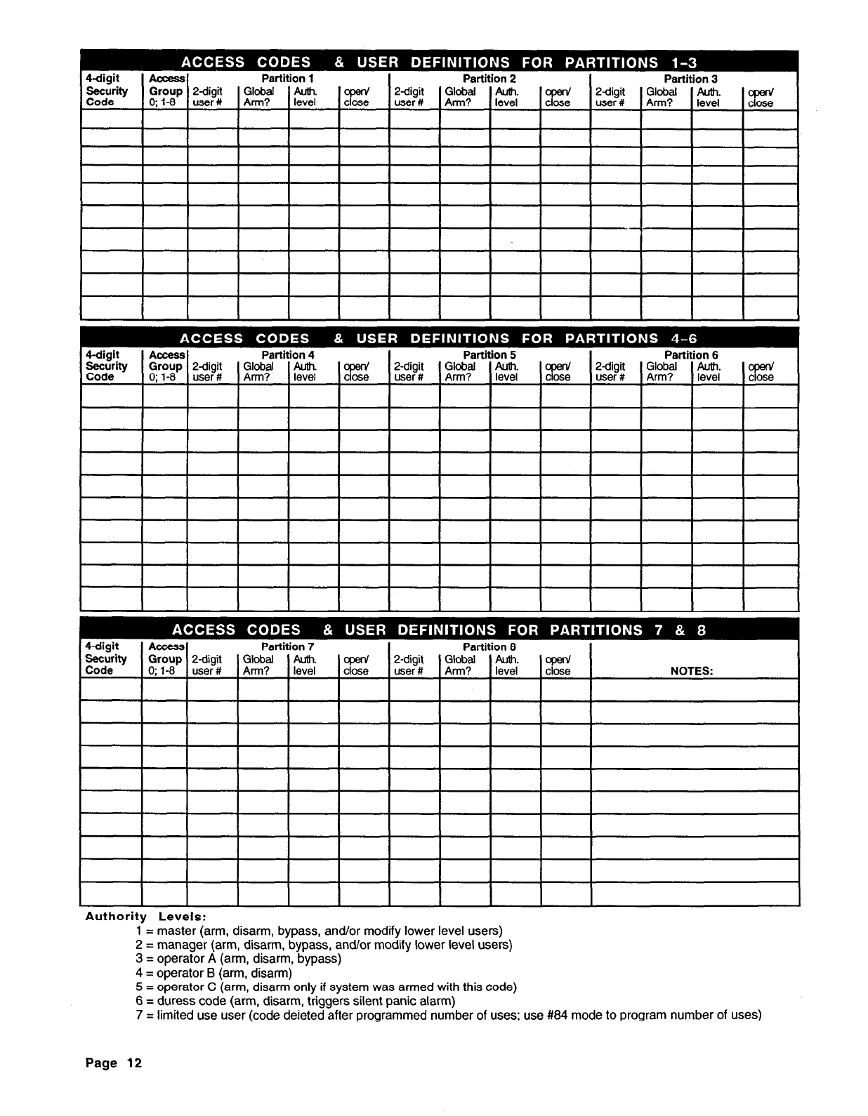 08 = 24 our Auxiliary; 09 = Fire; 10 = Interior, Delay; 1 1= 24 hr. burg.
