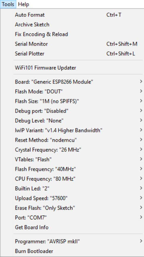 9. In the Arduino IDE, open the sketch menu and select Upload (assuming you have already