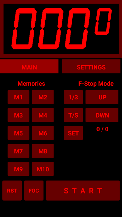 The timer can be used manually as a way of generating f-stop adjusted times for use with a separate