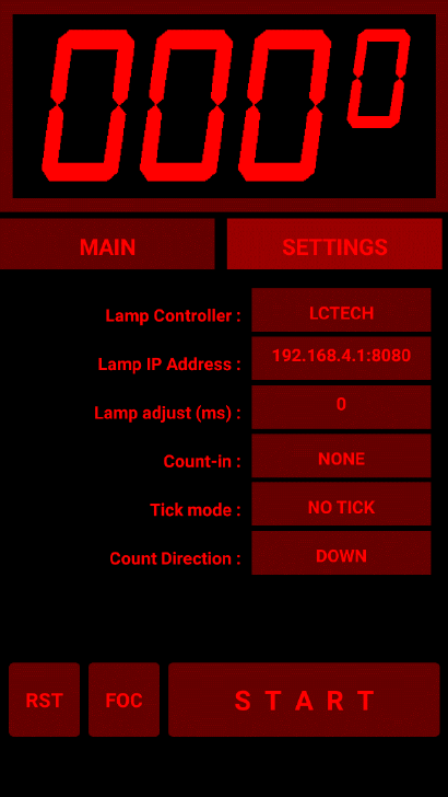 There are two screens on the timer: The Main screen is where all the timing operations are