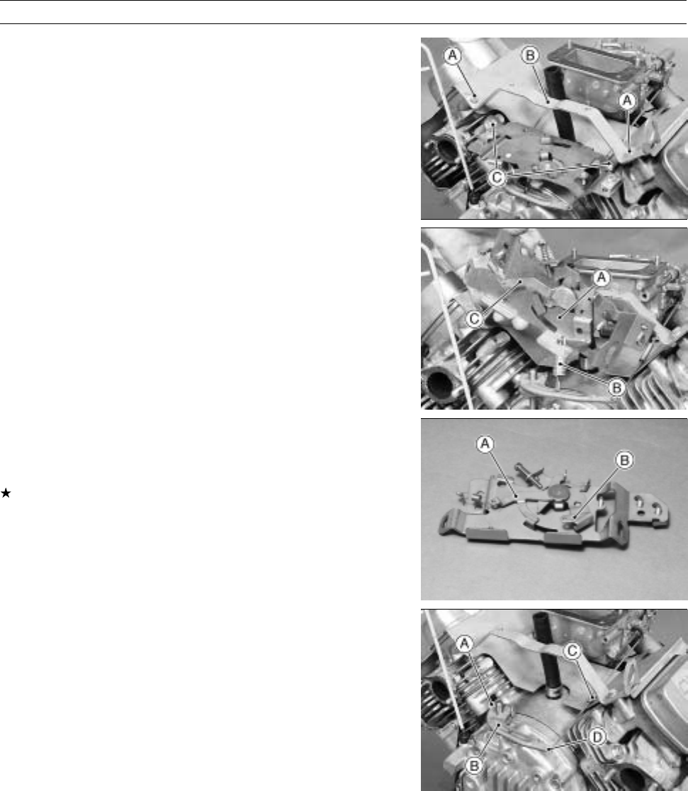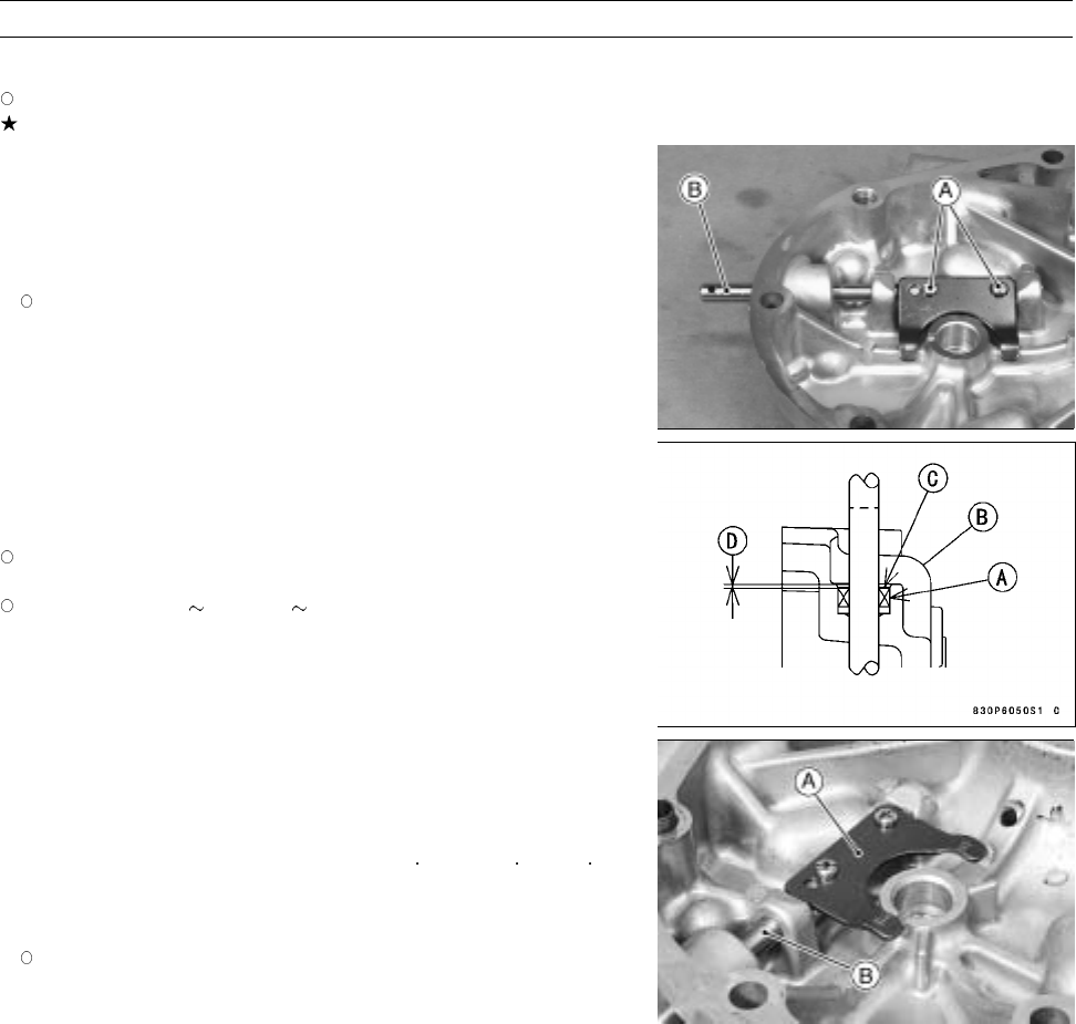 •Fit the projection [D] on the brush plate into the notch [E] in the yoke.