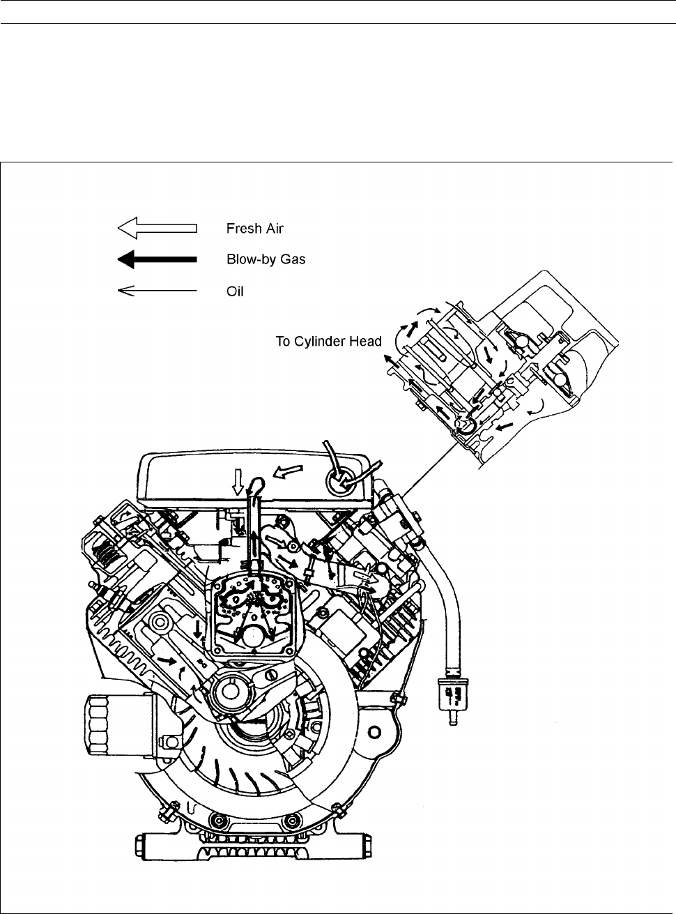 gasses are led to a breather chamber through the crankcase and from there to the air cleaner.