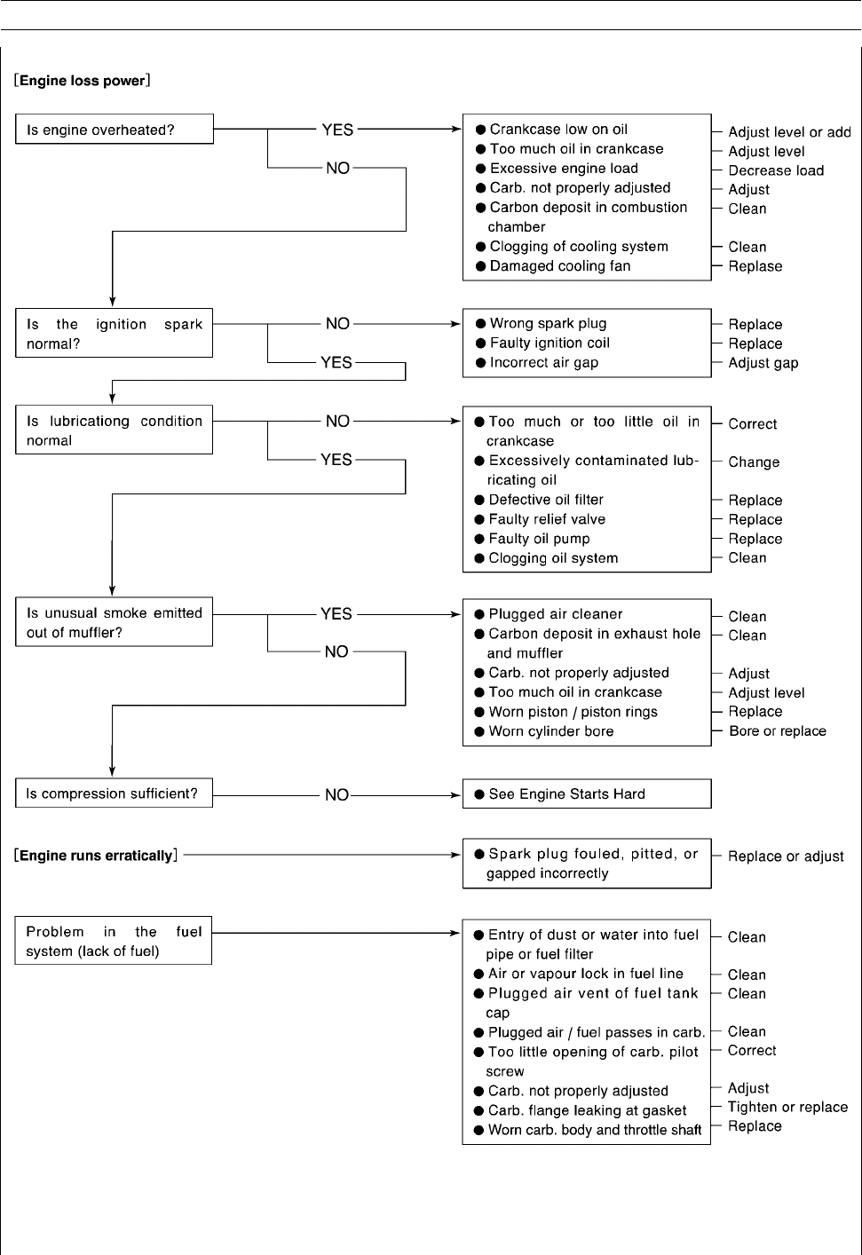 If the engine malfunctions, check if the way the engine is used is correct. If engine malfunctions even if engine is used