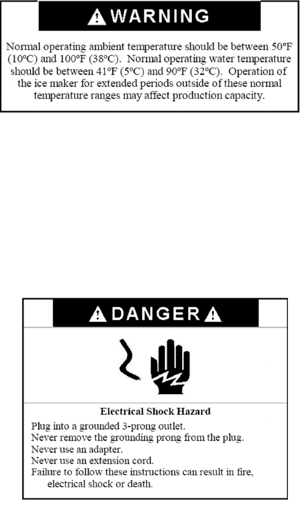 NOTICE: Models FIM400, FIM600 and FIM1000 are ice-making units and do not
