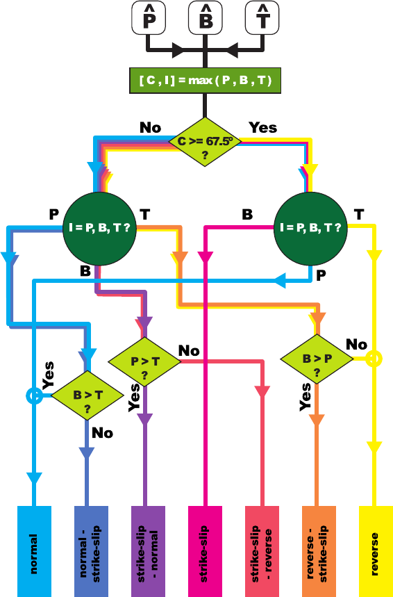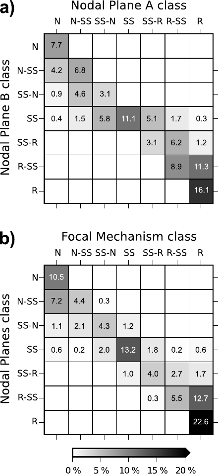 ferent parameters that can be obtained, classifies each focal mechanism in