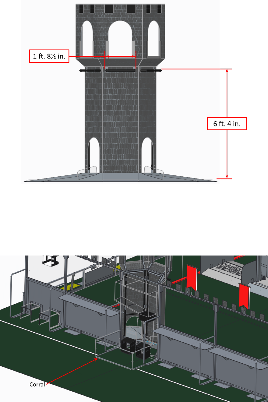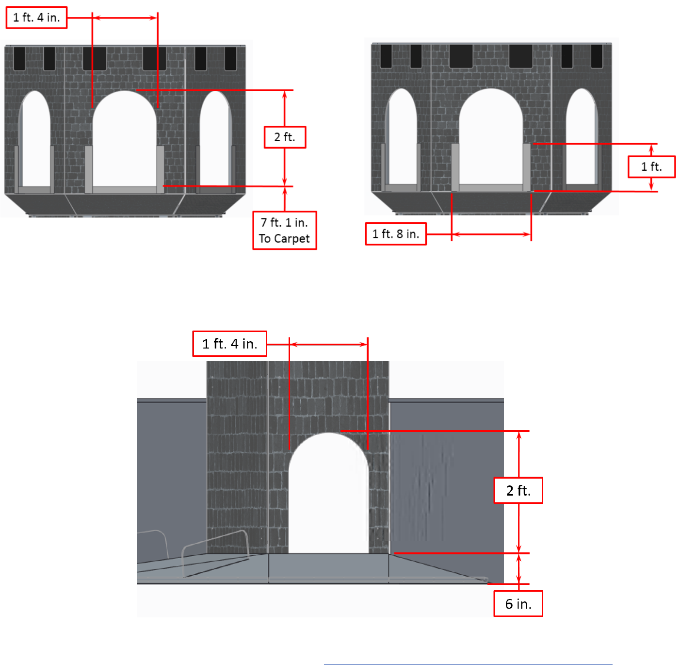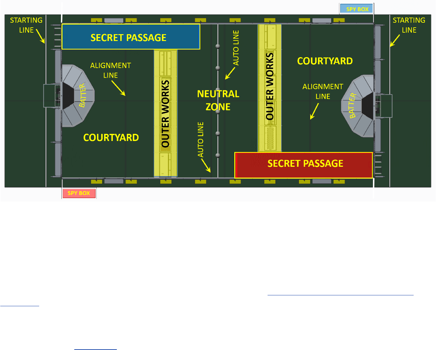 STARTING LINE a 2 in. white gaffers tape line that is the width of the CASTLE and is 2 ft. 6 in. from the